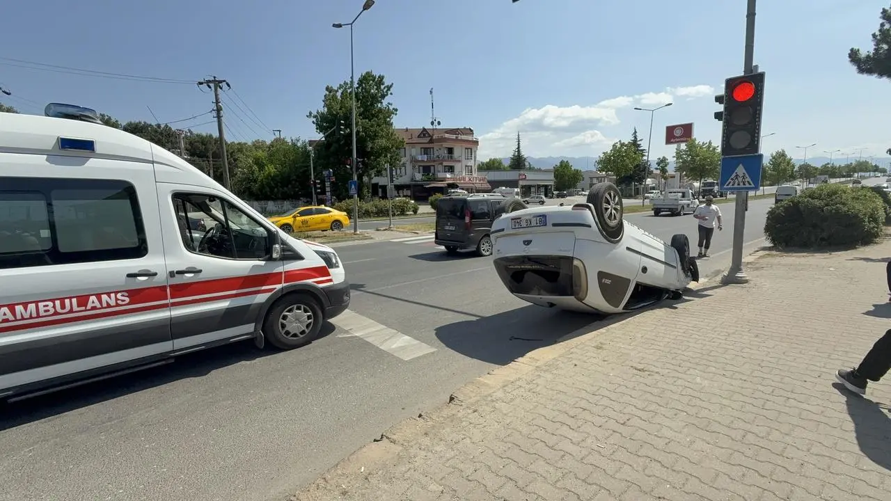 Düzce'de yaya geçidinde duran otomobile arkadan çarpan araç takla atarak üç kişinin yaralanmasına neden oldu.