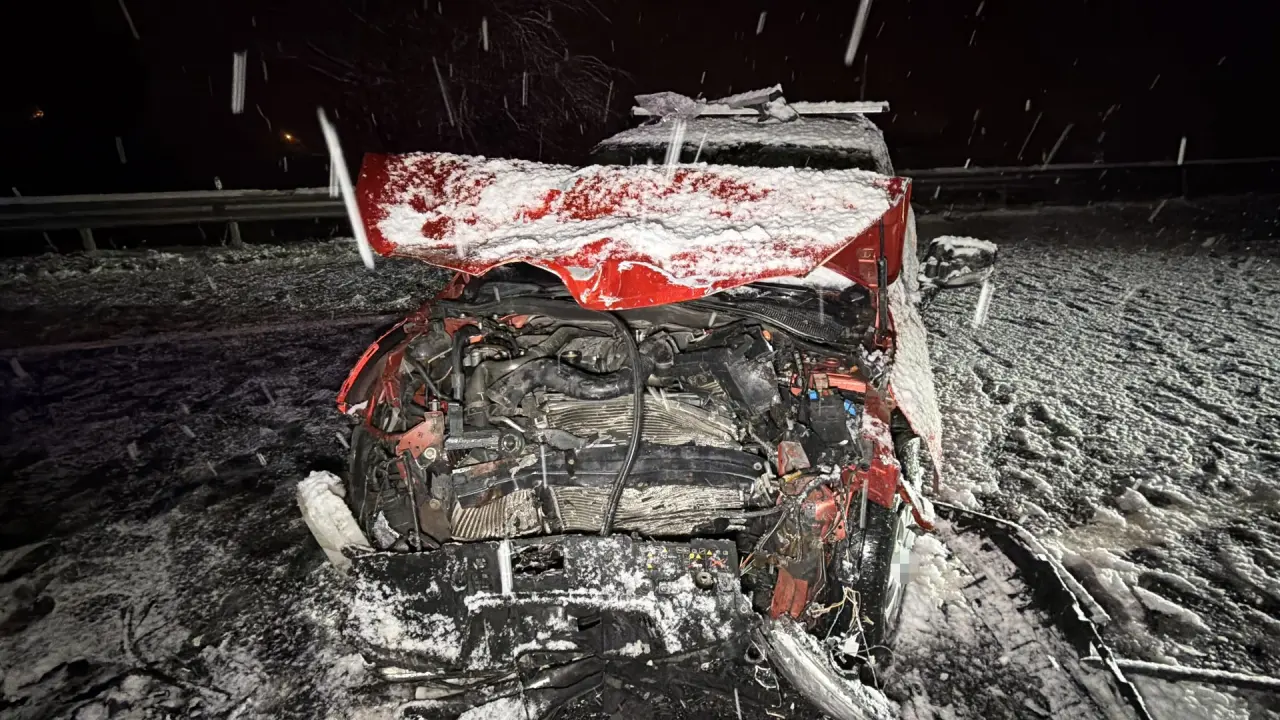 Düzce’de yoğun kar yağışı nedeniyle kayganlaşan yolda iki araç kafa kafaya çarpıştı, 7 kişi yaralandı. Kazada araçlar hurdaya döndü.