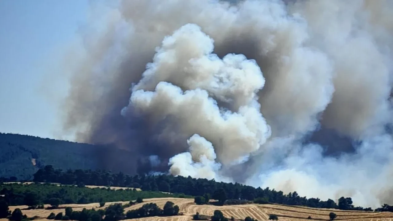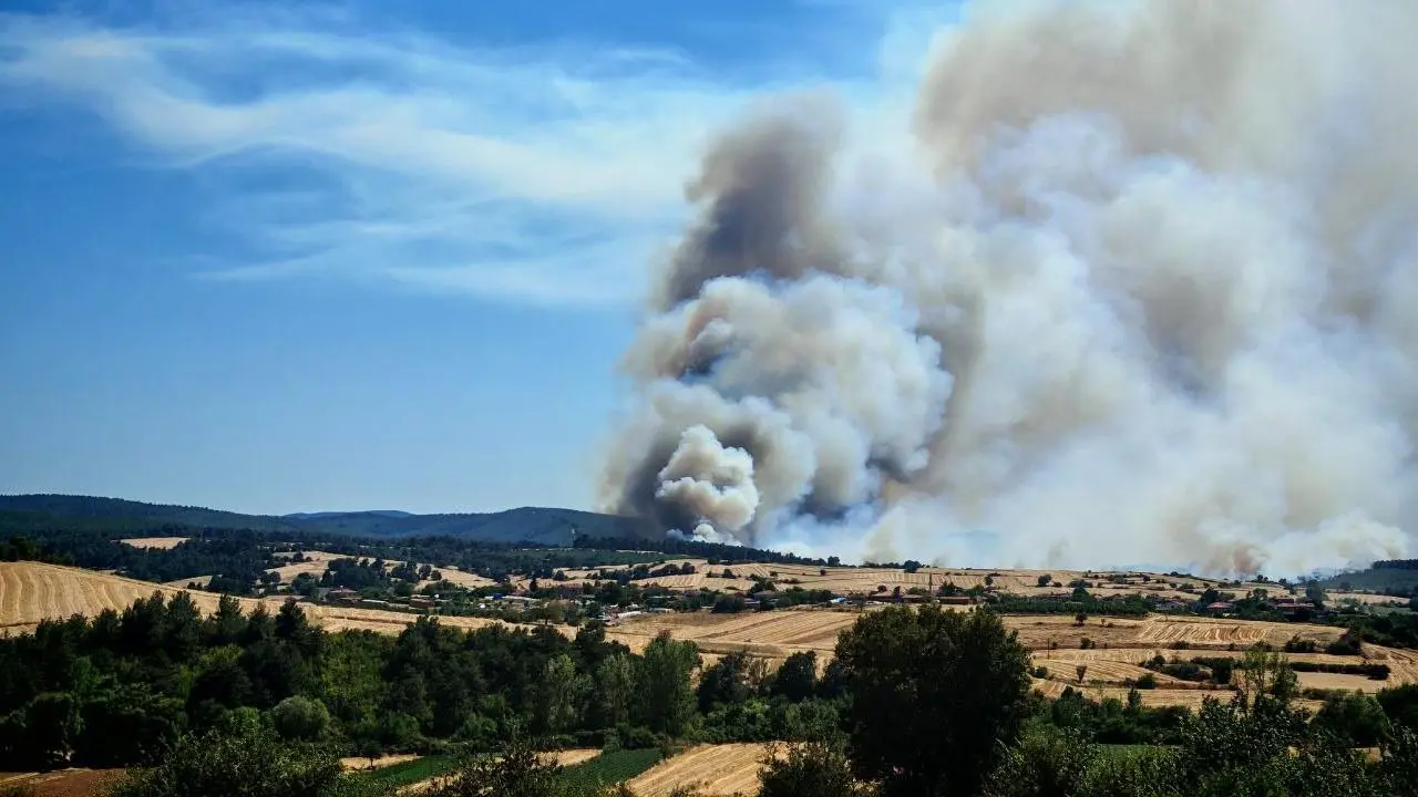 Edirne'nin Keşan ilçesinde çıkan orman yangını rüzgarın etkisiyle büyüyerek tarım arazilerini tehdit ediyor.