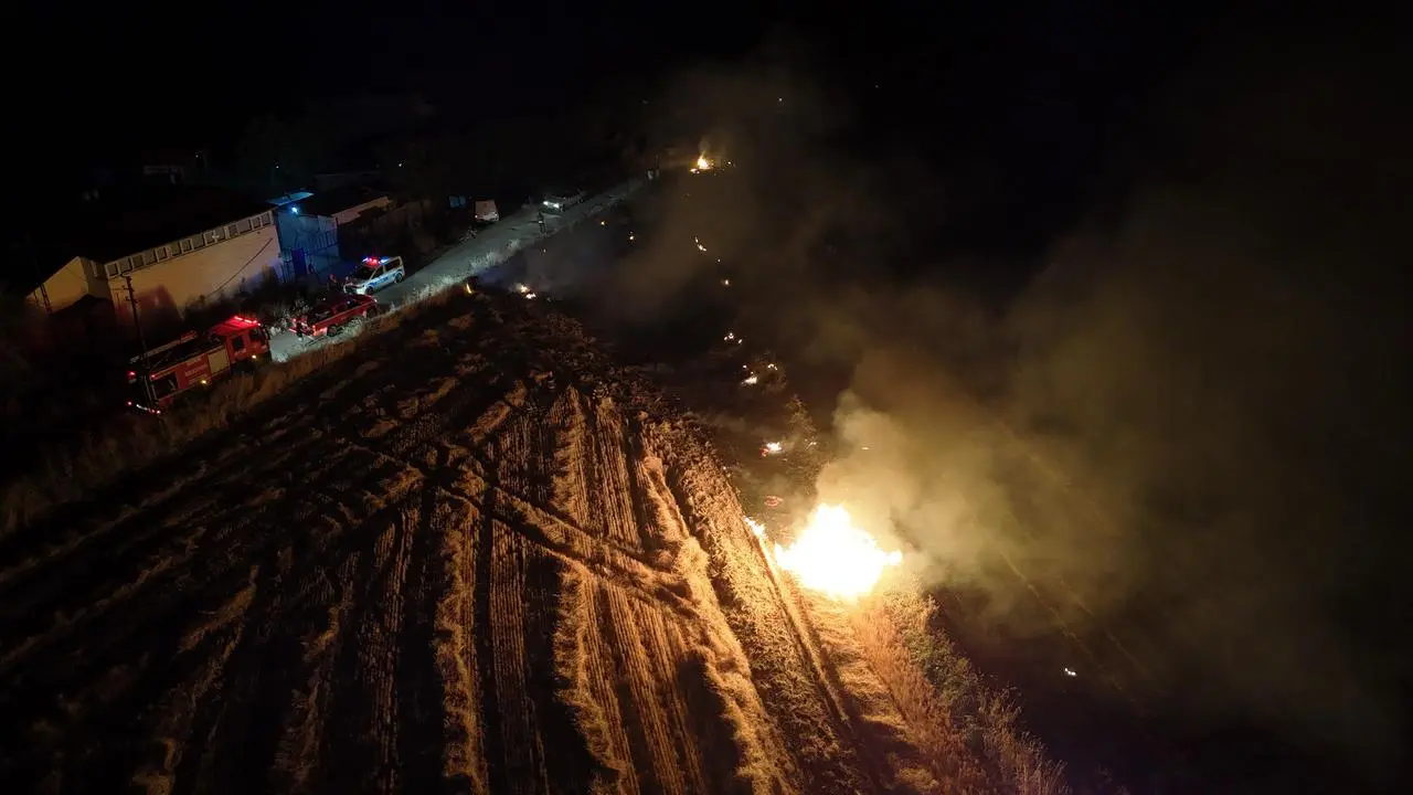 İtfaiye ekipleri yangına hızlıca müdahale etti. Çiftçiler de traktörleriyle söndürme çalışmalarına destek verdi.