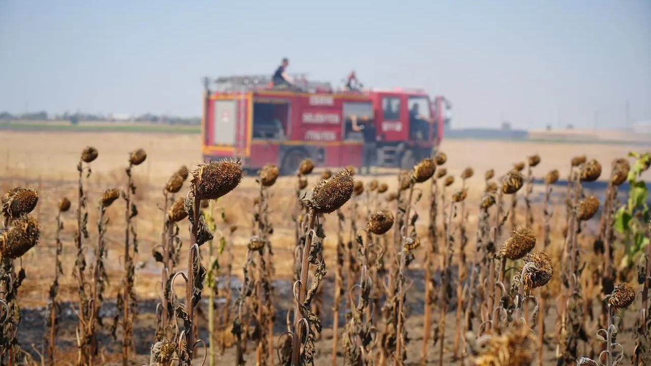 Edirne'de rüzgarın etkisiyle büyüyen anız yangını, itfaiye ekiplerinin müdahalesiyle ayçiçek tarlalarına ulaşmadan söndürüldü.