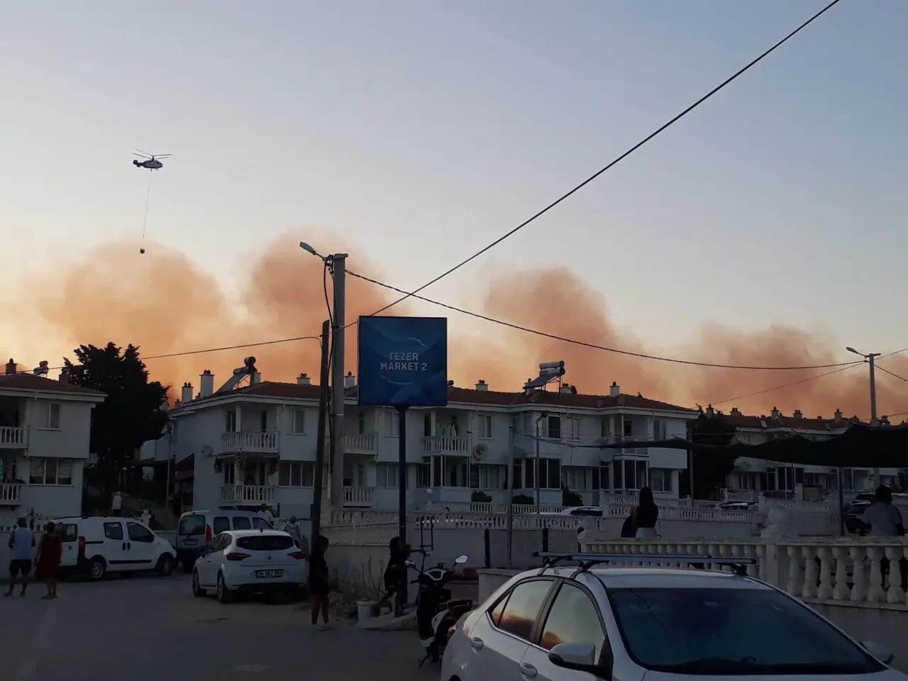 Havadan 2 helikopterle desteklenen söndürme çalışmaları devam ediyor. Yangın yazlık evlere yaklaşsa da şimdilik can kaybı riski bulunmuyor.