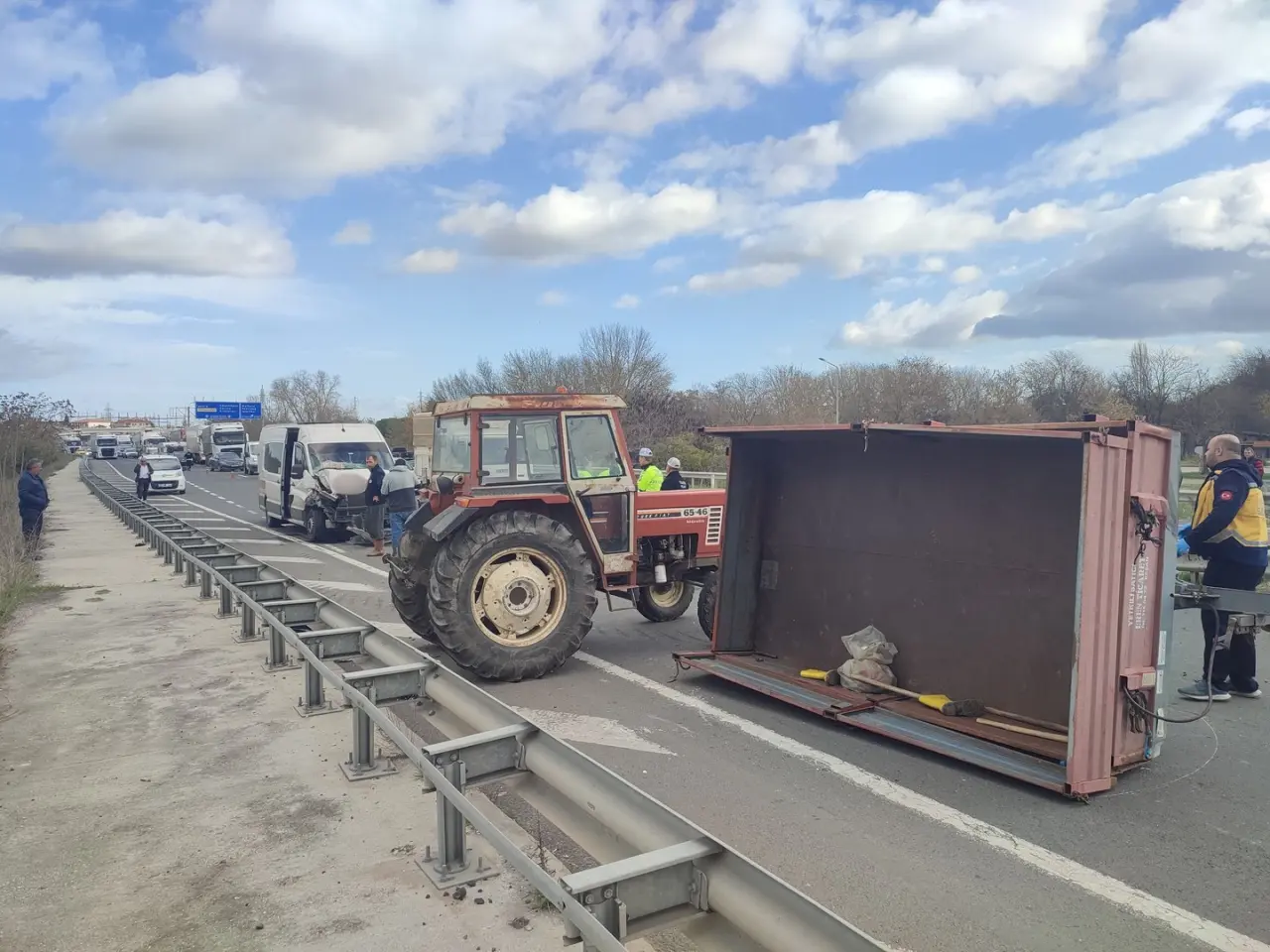 Tekirdağ'dan Gelibolu'ya giden yolcu midibüsü, traktör römorkuna arkadan çarptı. Çarpma etkisiyle römork yan yatarak kaza meydana geldi.