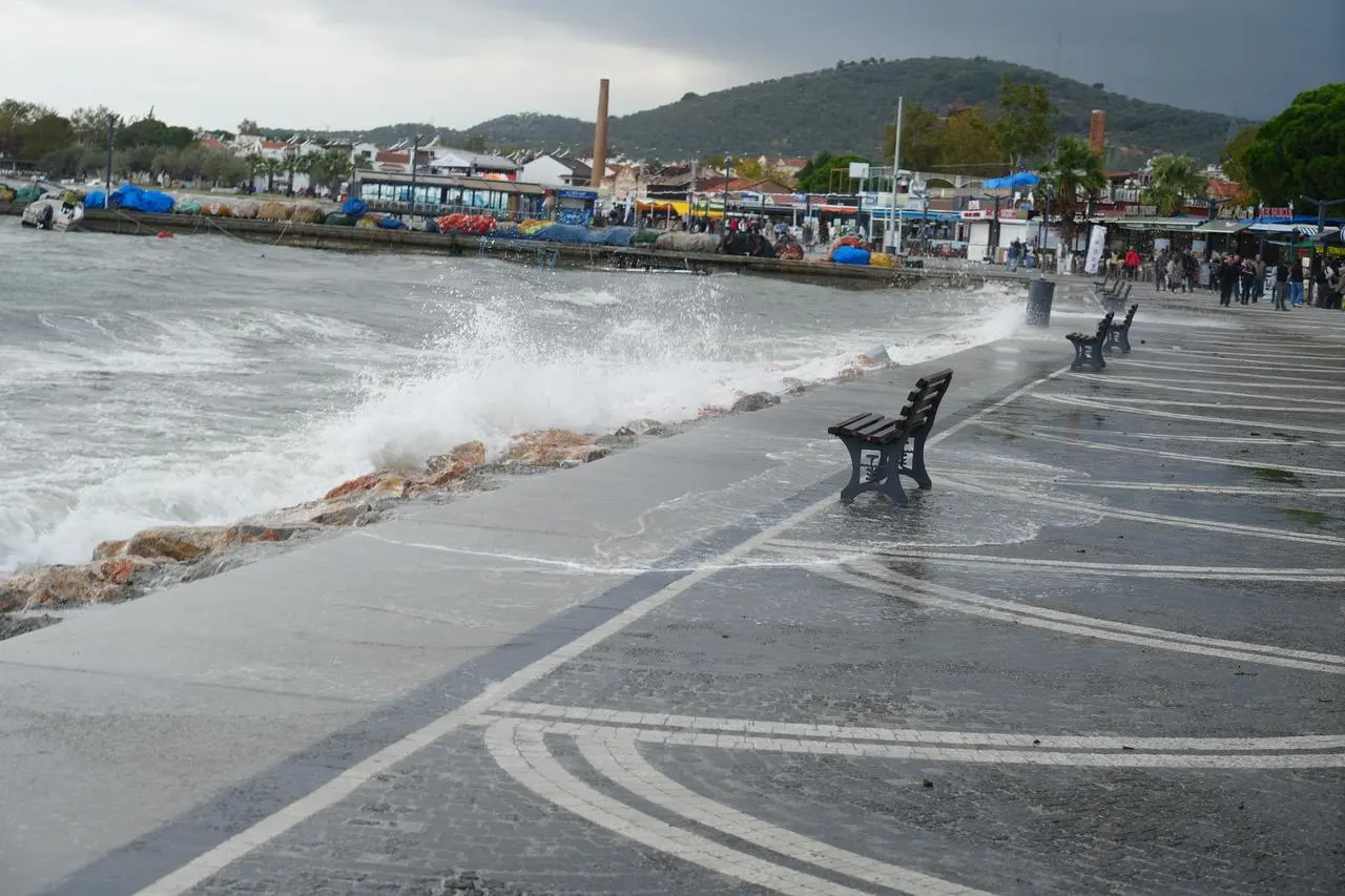 Edremit Körfezi'nde şiddetli lodos nedeniyle iki balıkçı teknesi battı, sahil kesiminde hayat olumsuz etkilendi.