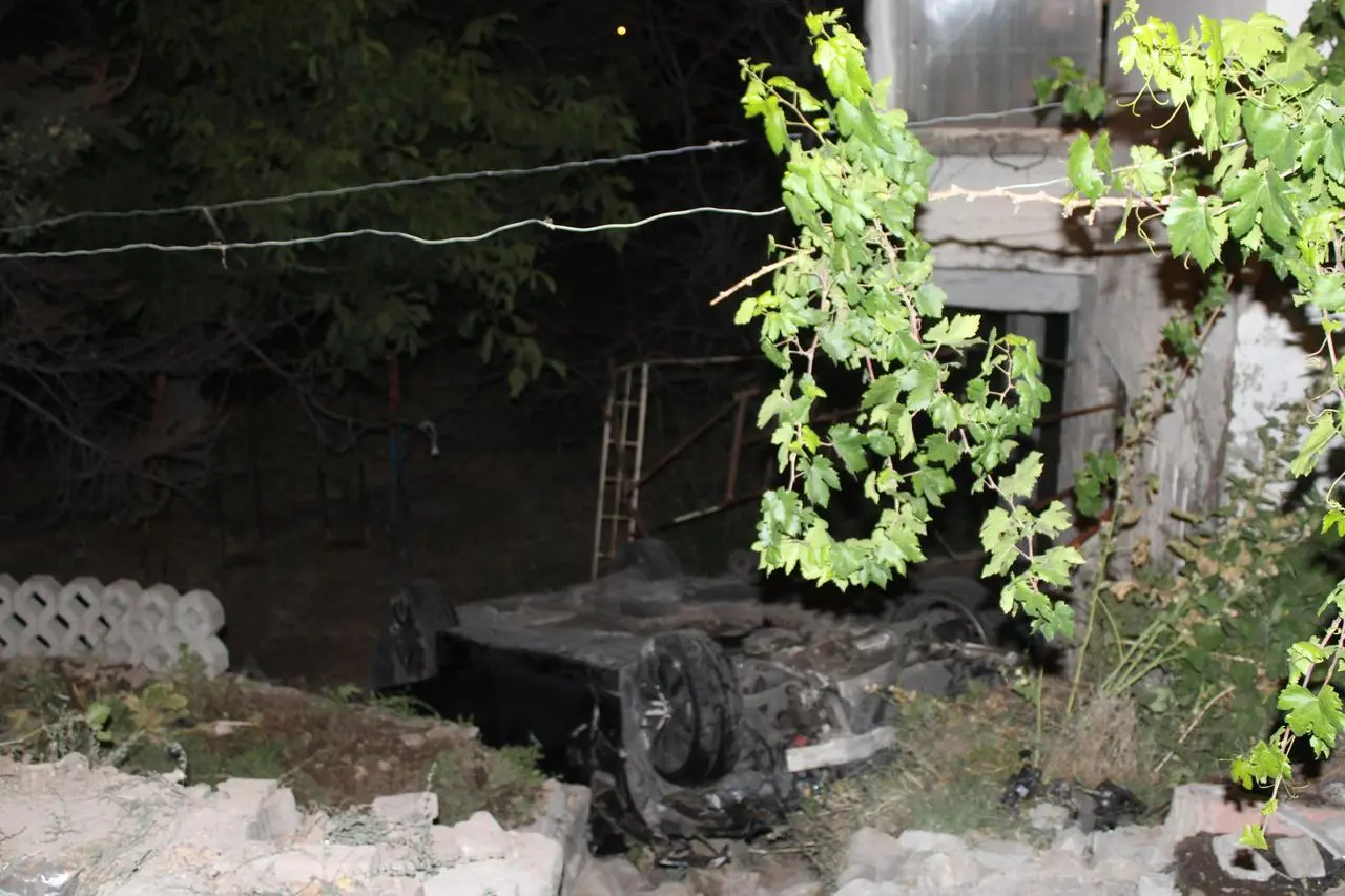 Kayseri'nin Talas ilçesinde ehliyetsiz sürücü direksiyon hakimiyetini kaybederek bir evin bahçesine uçtu.