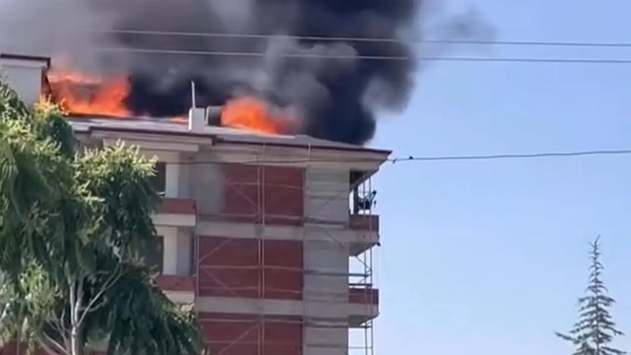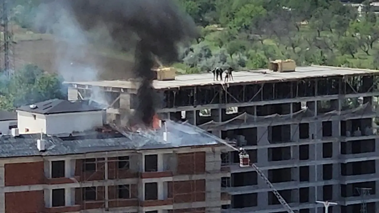 Elazığ'da inşaat halindeki binanın çatısında çıkan yangın, itfaiye ekiplerinin müdahalesiyle söndürüldü.