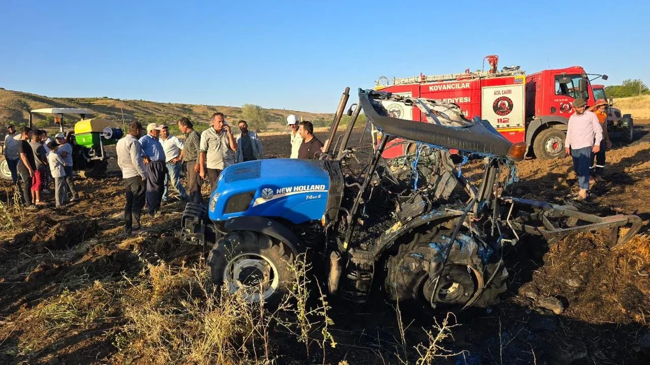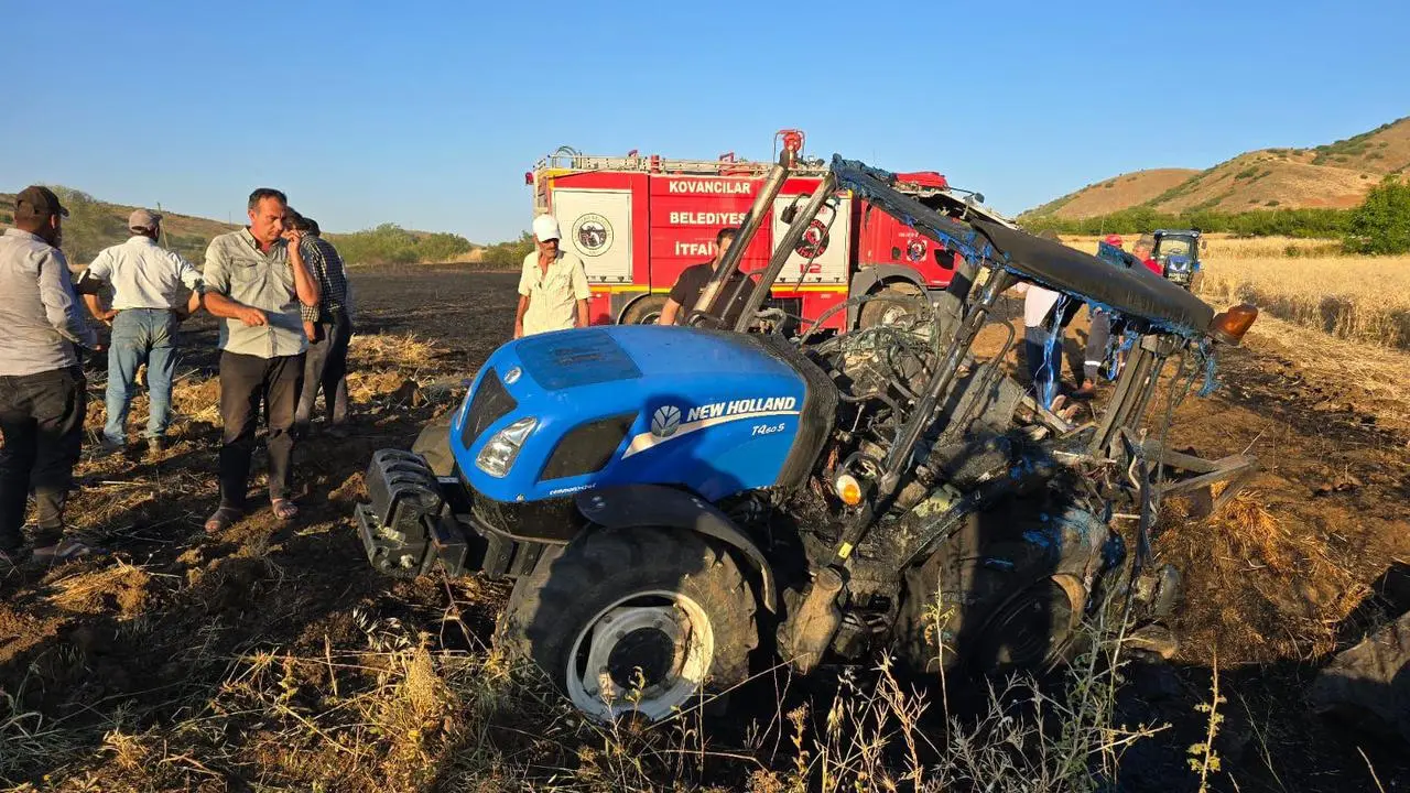 Elazığ'ın Kovancılar ilçesine bağlı Yolüstü köyündeki arazi yangınında bir traktör yanarak kullanılamaz hale geldi, ekili alanlar zarar gördü.