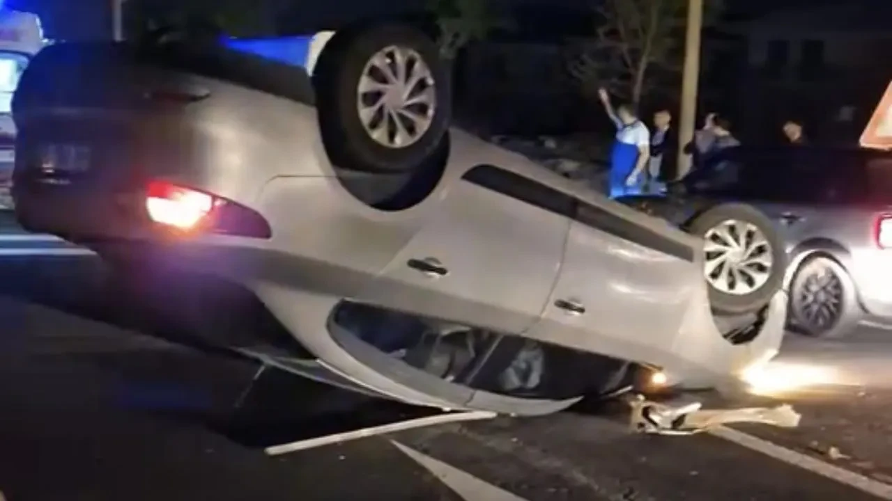 Sürücü direksiyon hakimiyetini yitirerek refüje çarptı. Çarpmanın etkisiyle araç ters döndü.