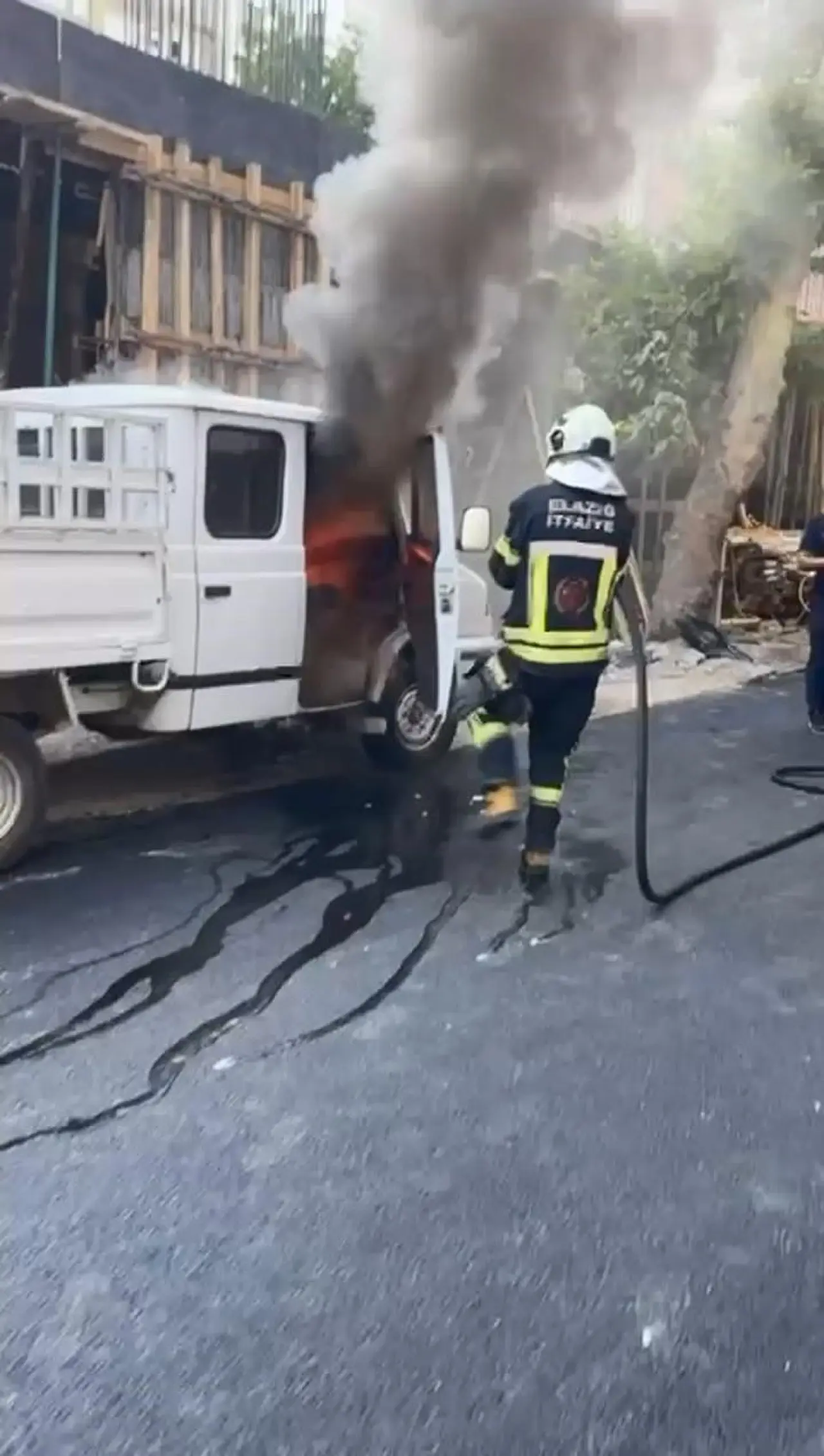Elazığ'da park halindeki pikap aniden yanarak hasar gördü. İtfaiye ekipleri hızla müdahale ederek yangını kontrol altına aldı.