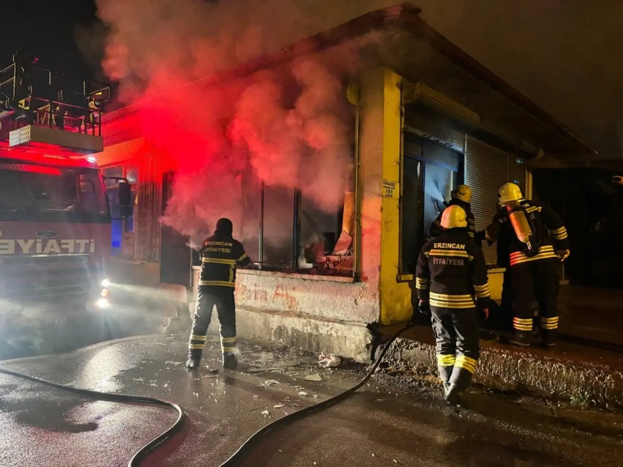 Gece yarısı Erzincan’da çıkan yangına kepenk ve camlar kırılarak müdahale edildi.