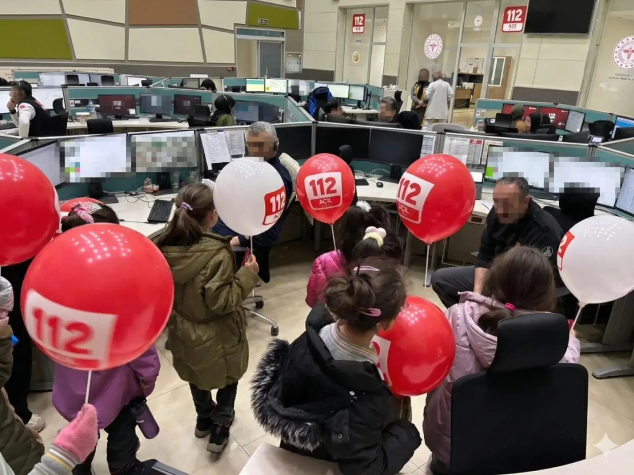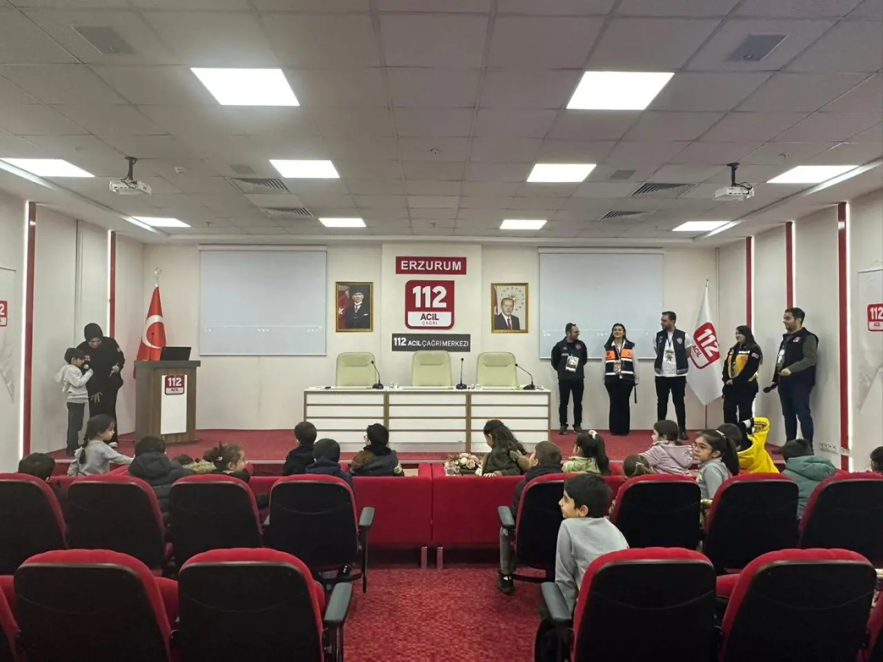 Erzurum'da çocuklara 112 farkındalığını artırmak amacıyla özel bir etkinlik düzenlendi. Tatbikat İlkokulu öğrencileri 112 Acil Çağrı Merkezini ziyaret ederek bilgi aldı.