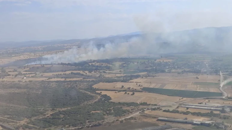 Alevlerin yükseldiği fabrika havadan görüntülendi. Görüntülerde yoğun duman ve alevler dikkat çekti.