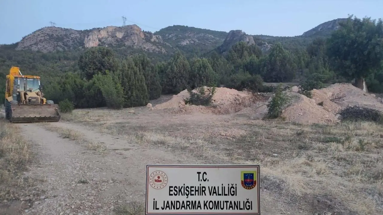 Eskişehir'de jandarma ekipleri, Roma dönemine ait nekropol alanında kepçeyle kaçak kazı yapan 5 şüpheliyi suçüstü yakaladı.