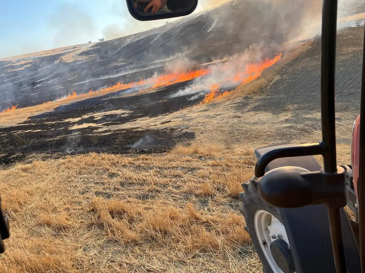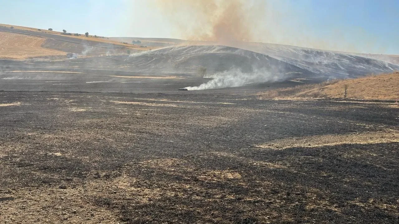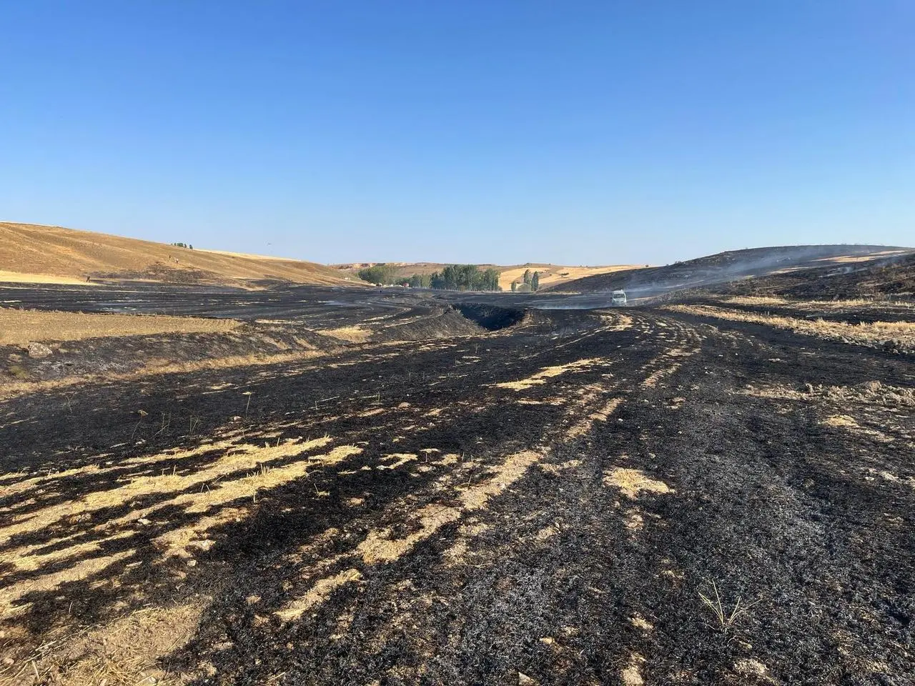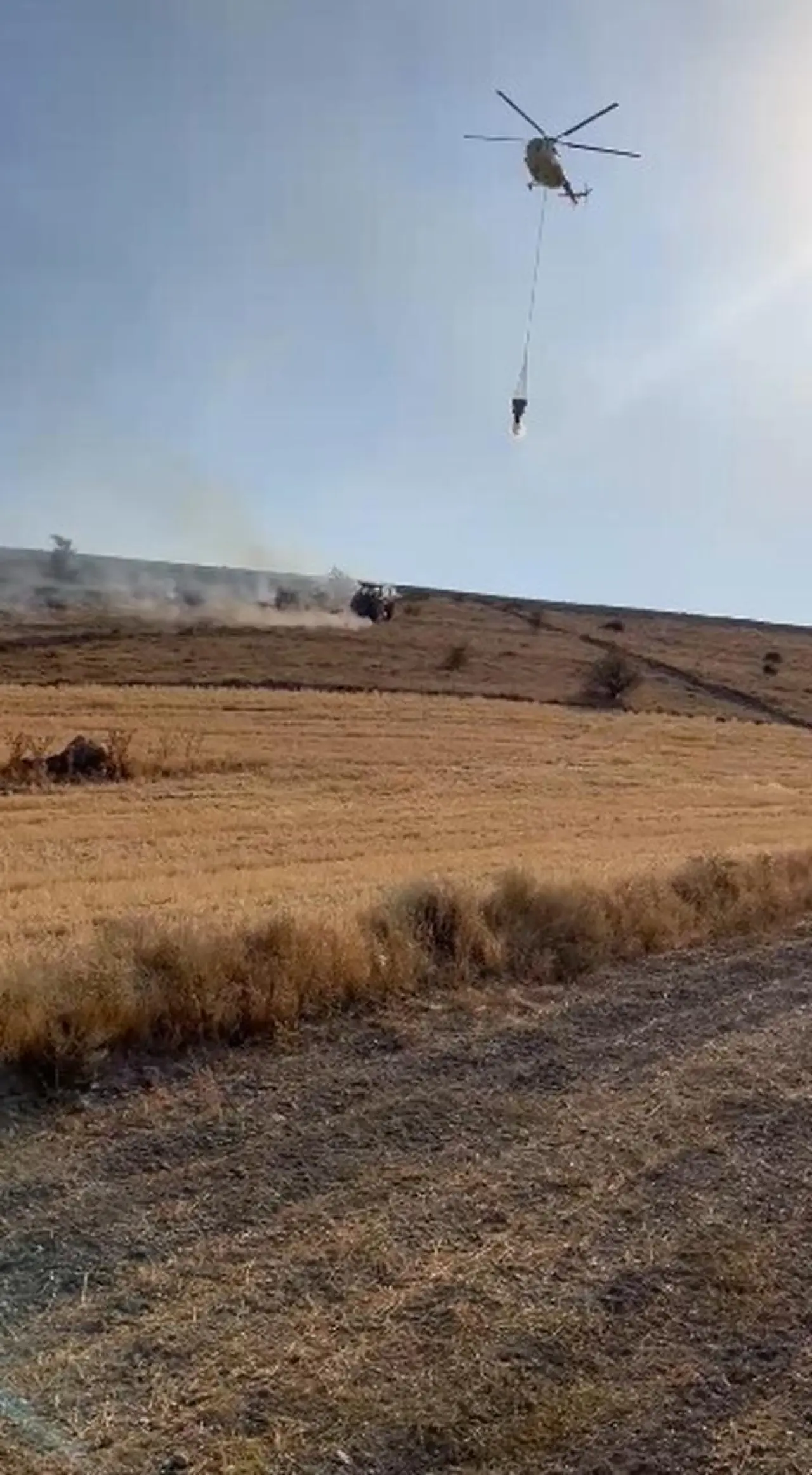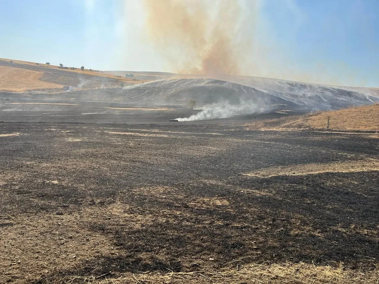 Hızla yayılan yangın, tarlalar ve meralara doğru ilerledi. Bölge sakinleri traktörleriyle yangına müdahale ederek ekiplere destek oldu.