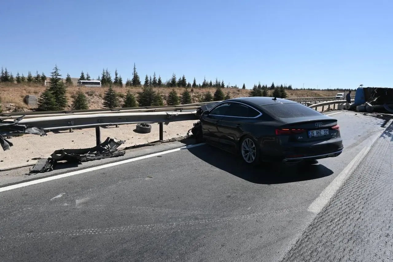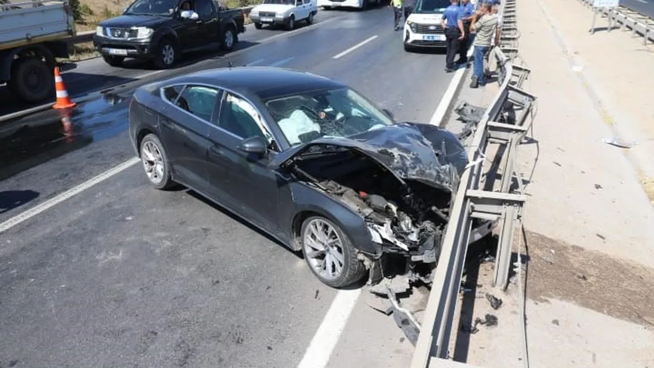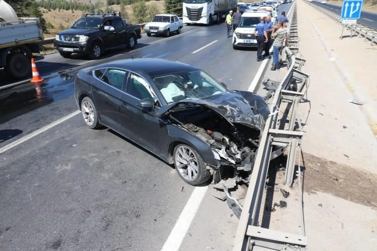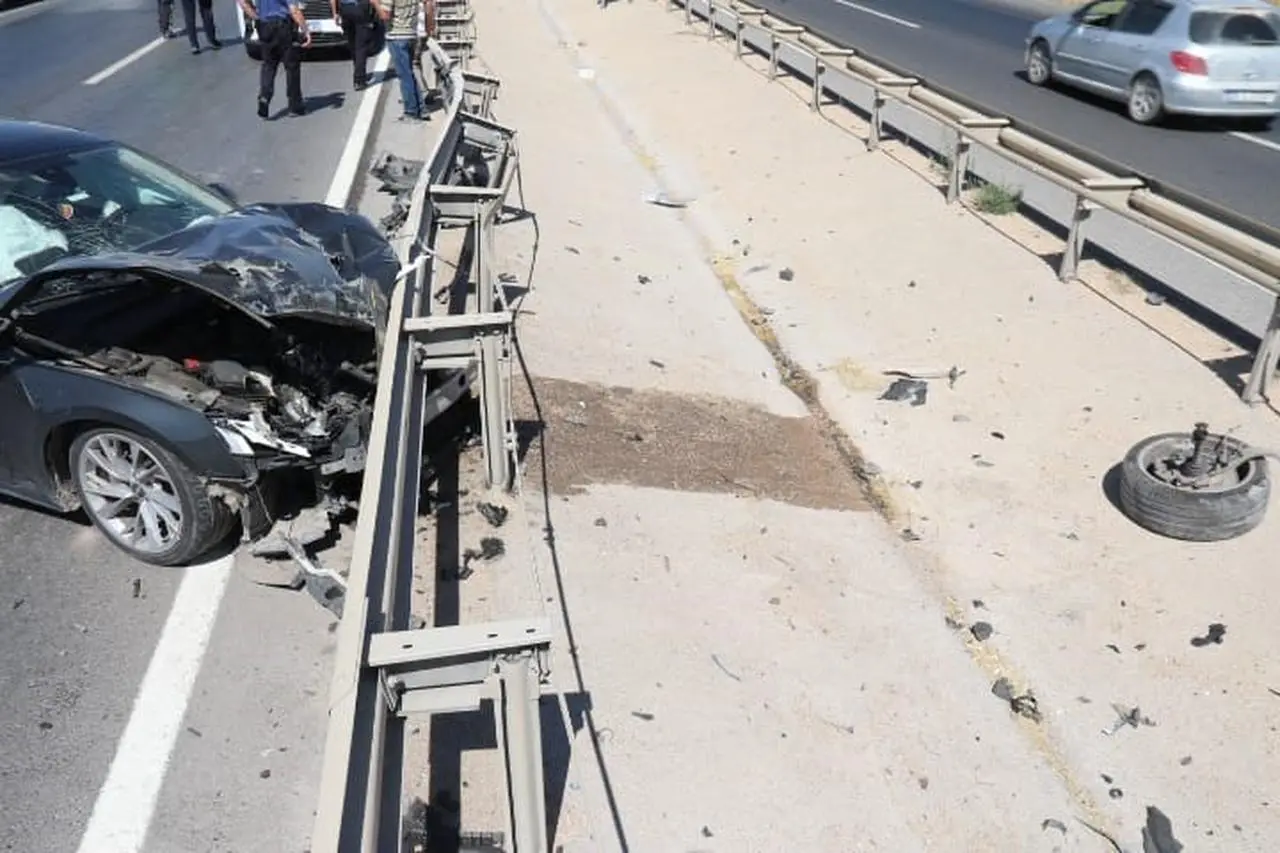 Otomobilin sol ön tekeri çıktı ve orta refüje savruldu. Polis ekipleri kaza ile ilgili incelemelerine başladı.