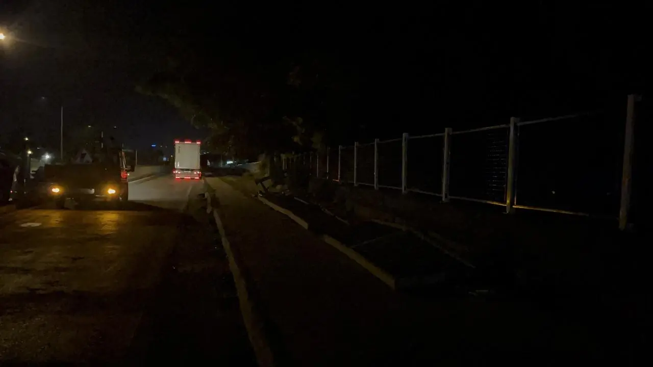 Bariyerleri adeta biçen tır, yaklaşık 20 metre sürüklendi. Araç, yan yatarak durduğunda sürücü hafif sıyrıklarla kurtuldu.