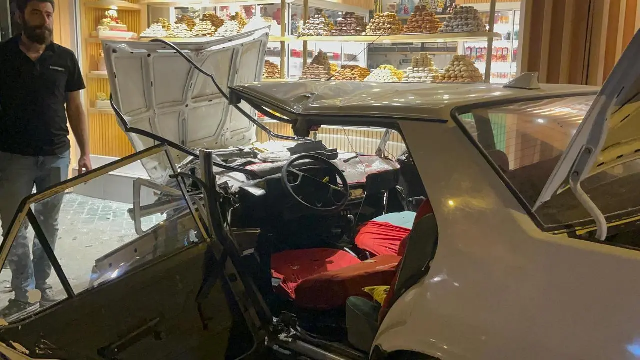 Kaza anı pastaneye ait güvenlik kameralarına yansıdı. Görüntülerde Tofaş'ın çarpma sonrası vitrine ve yayaya çarpma anı net şekilde görülüyor.