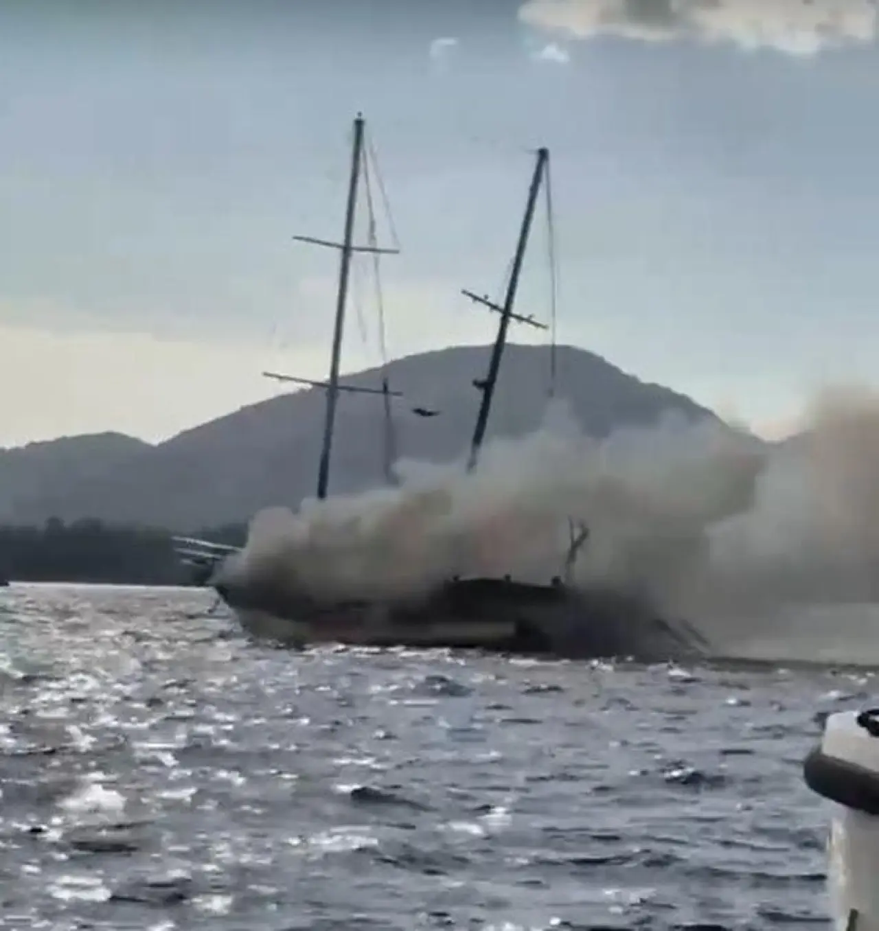 Yangına denizden müdahale edilirken tekne başka bir bot tarafından güvenli alana çekildi. Özel tekneler de söndürme çalışmalarına destek verdi.