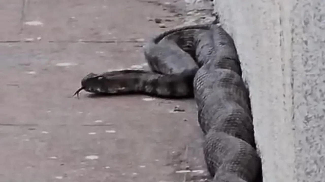 Gaziantep'in Şahinbey ilçesinde bir sitenin bahçesinde görülen yılan, mahalle sakinlerini tedirgin etti.