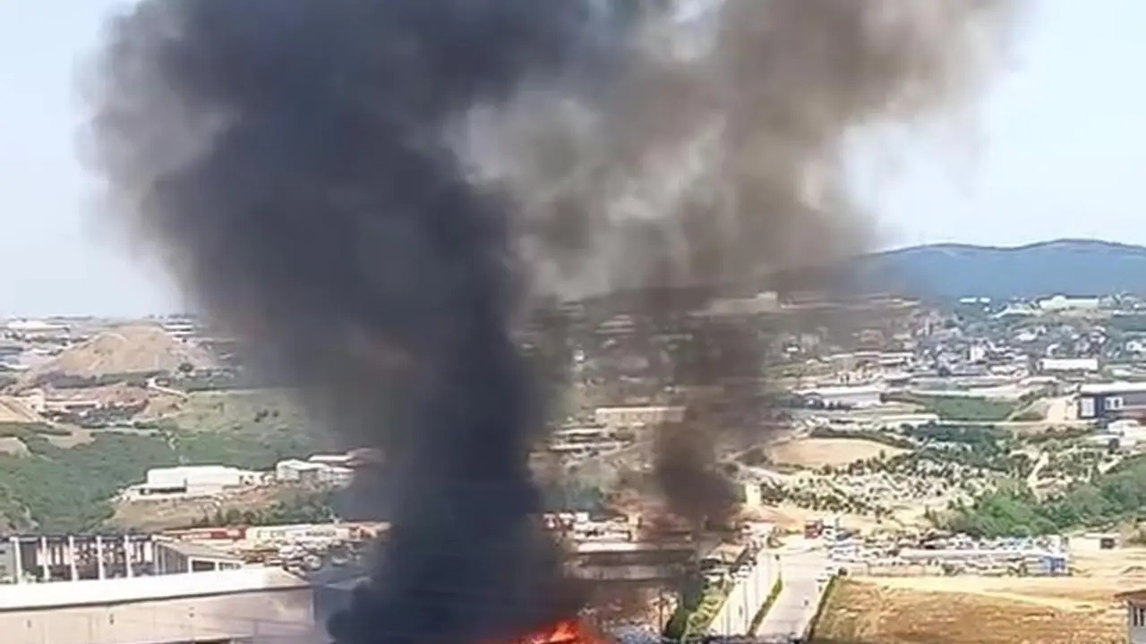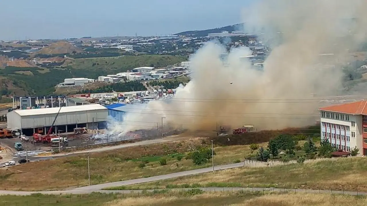 Kocaeli'nin Gebze ilçesindeki çöp ayrıştırma tesisi bahçesinde çıkan yangın, büyük bir dumana neden oldu.