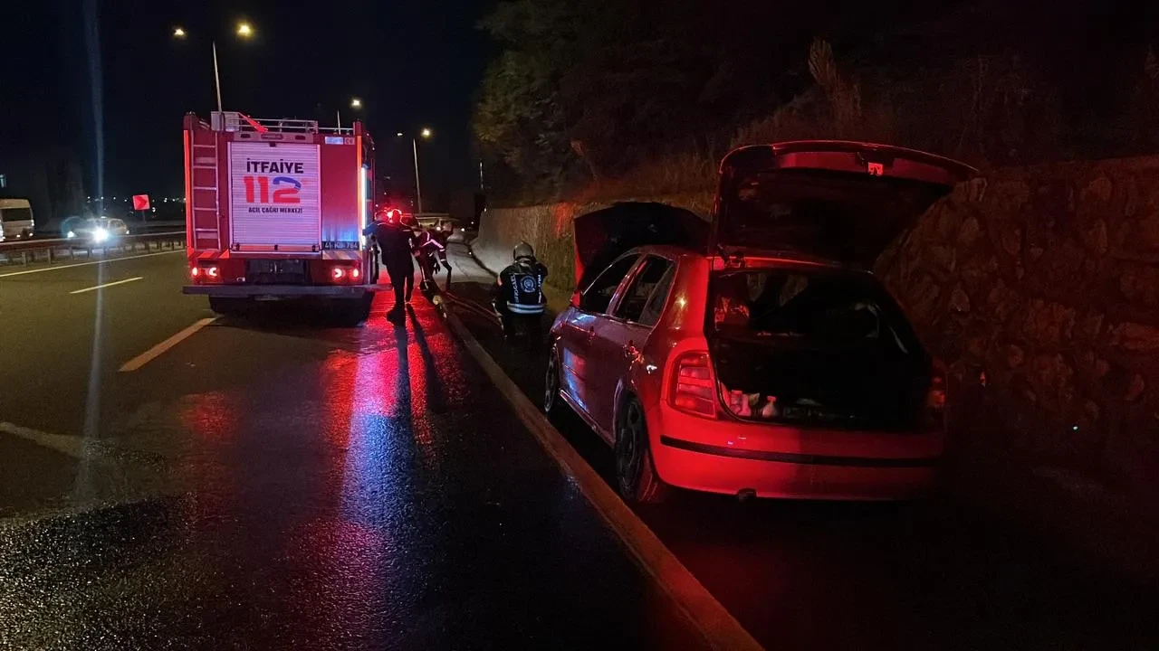 D-100 Karayolu Tatlıkuyu mevkisinde seyreden 34 GDY 388 plakalı otomobilin motor kısmından alevler yükseldi. Sürücü ve yolcular durumu fark edip hızlıca araçtan inerek 112'yi aradı.