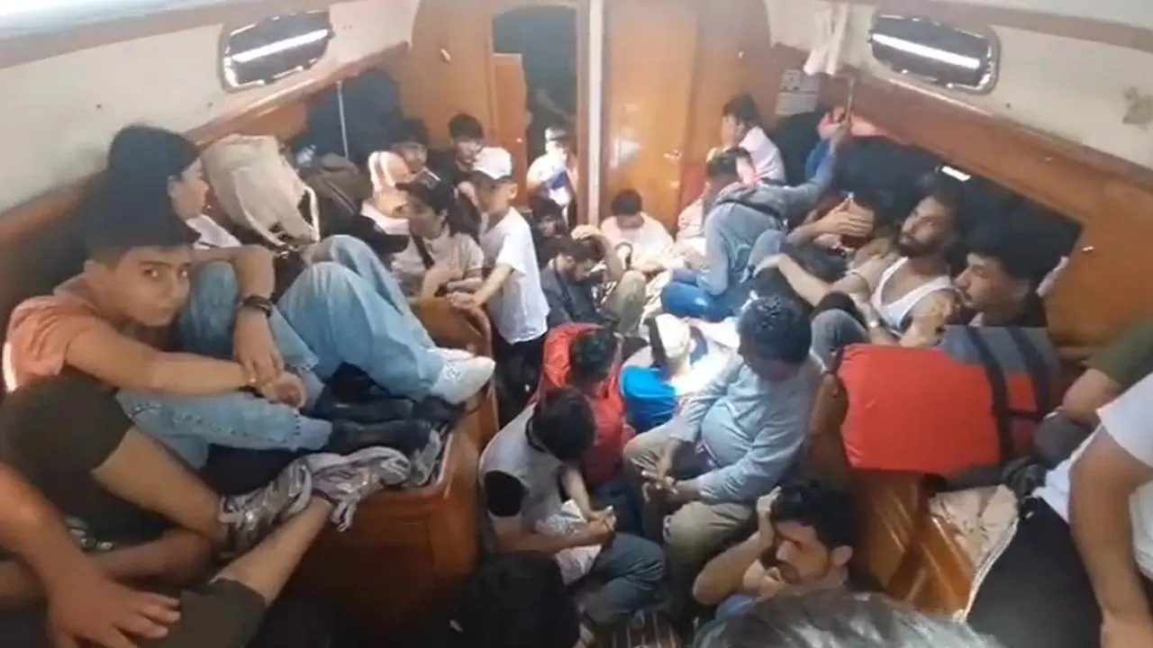 Teknede 14'ü çocuk olmak üzere toplam 51 kaçak göçmen bulundu. İki göçmen kaçakçısı şüphelisi de operasyonda yakalandı.
