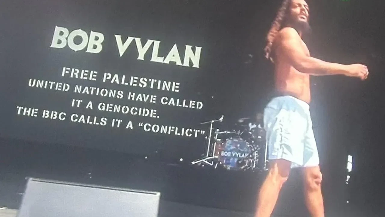 Rap müzik grubu Bob Vylan'ın üyesi, kalabalığa "İsrail Savunma Kuvvetleri'ne ölüm" sloganları attırdı. Festival alanında onlarca Filistin bayrağı dalgalanırken, protestolar büyük yankı uyandırdı.