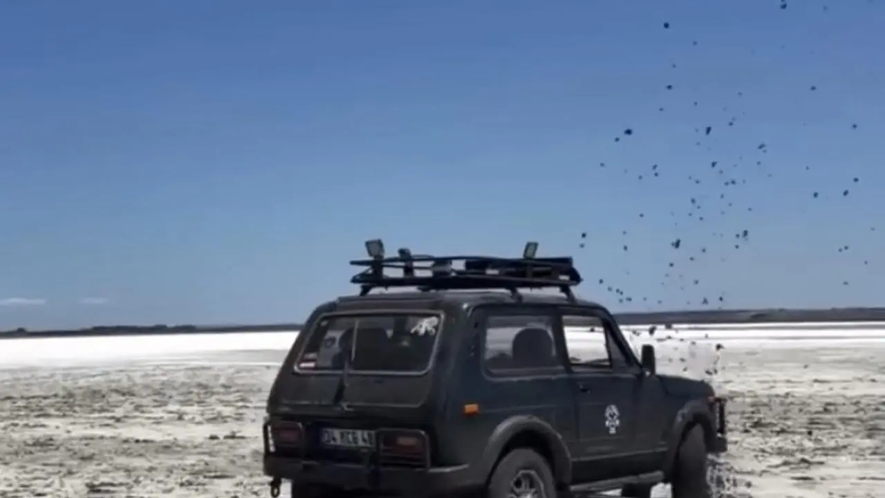 Gökçeada'da Tuz Gölü'nde arazi aracıyla drift yapan şahıs, sosyal medyada paylaştığı görüntüler nedeniyle tepki çekti.