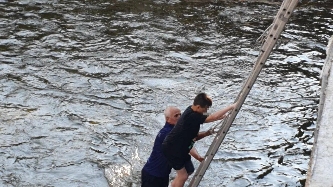 Gümüşhane Belediyesi İtfaiye ekipleri merdiven yardımıyla çaya indi. Ekipler çocuğu güvenli şekilde yukarı çıkarmayı başardı.