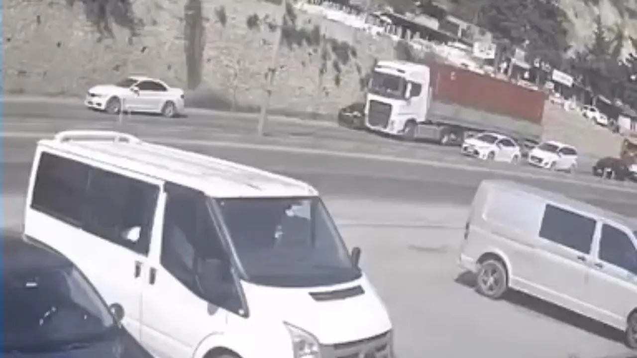 Tır sürücüsü, 31 AKA 848 plakalı otomobili fark etmesine rağmen yoluna devam etti. Güvenlik kameralarına yansıyan görüntülerde, sürücünün dikkatsiz davranışı açıkça görülüyor.