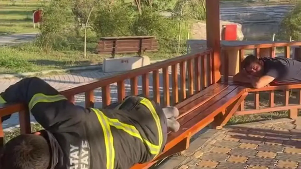 Yangının kontrol altına alınmasıyla ekipler bulundukları yerde dinlenmeye çekildi. Vatandaşlar, banklarda ve yerde uyuyan itfaiyecilerin görüntülerini kaydetti.
