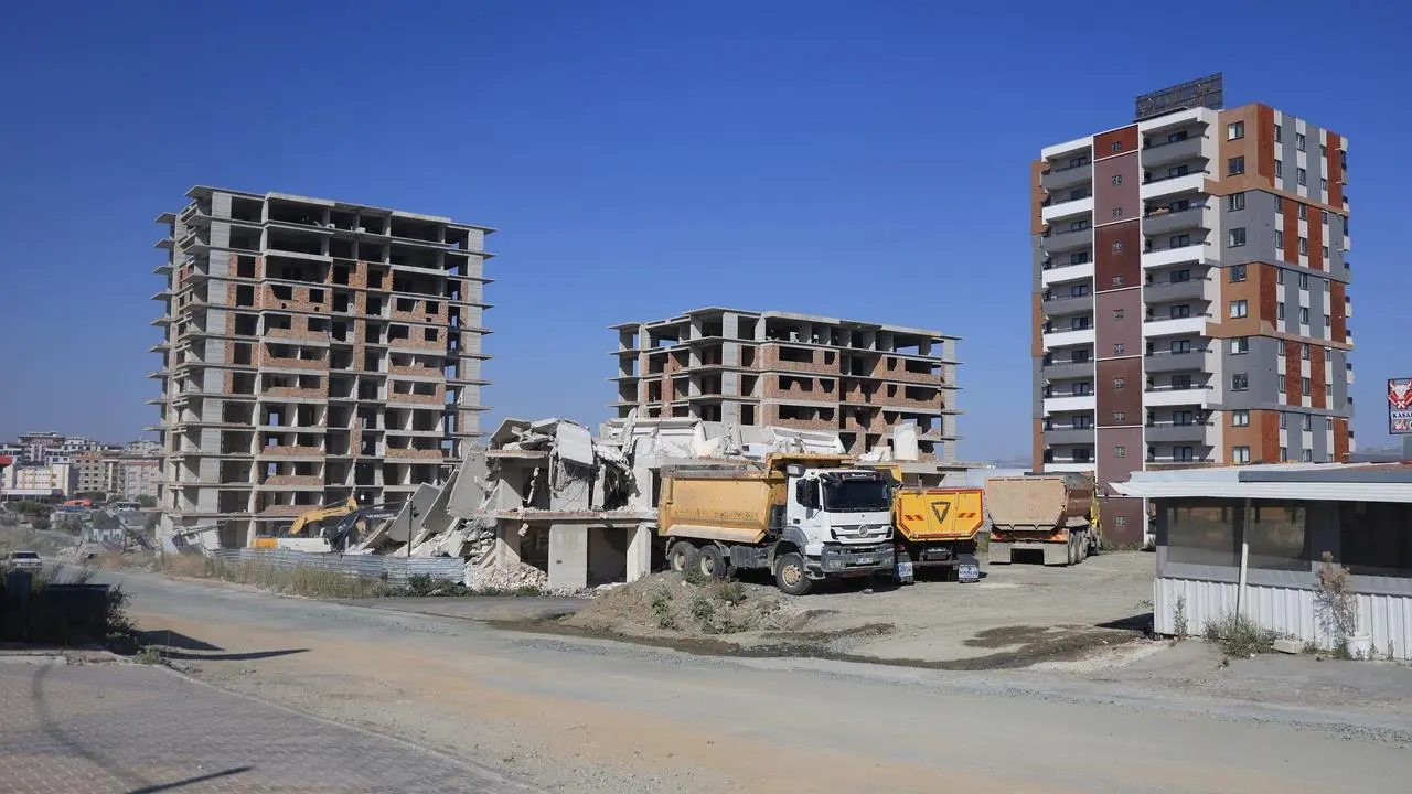 Kahramanmaraş depremlerinde hasar gören binalar için yıkım çalışmaları sürüyor. Saraycık Mahallesi'ndeki 13 katlı bina, mahkeme sürecinin ardından yıkıma alındı.