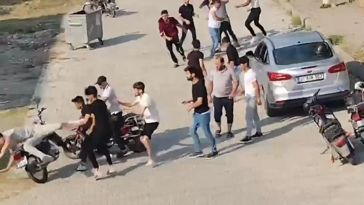Çevredeki vatandaşlar cep telefonlarıyla kavga anını görüntüledi. Polis gelmeden önce mahalle sakinleri kavgayı sonlandırmayı başardı.