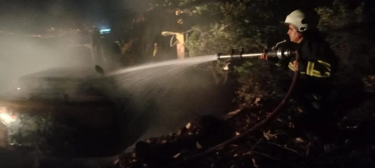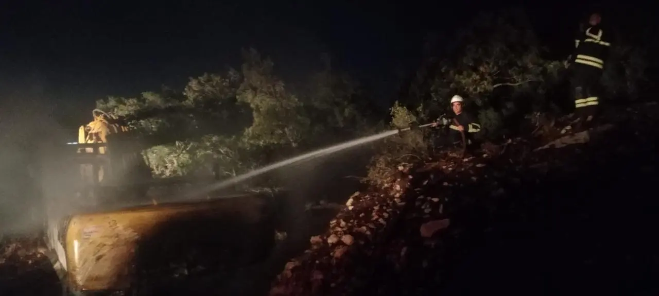 Hatay’da bir iş makinesinde çıkan yangın, ormanlık alana sıçramadan başarıyla söndürüldü.