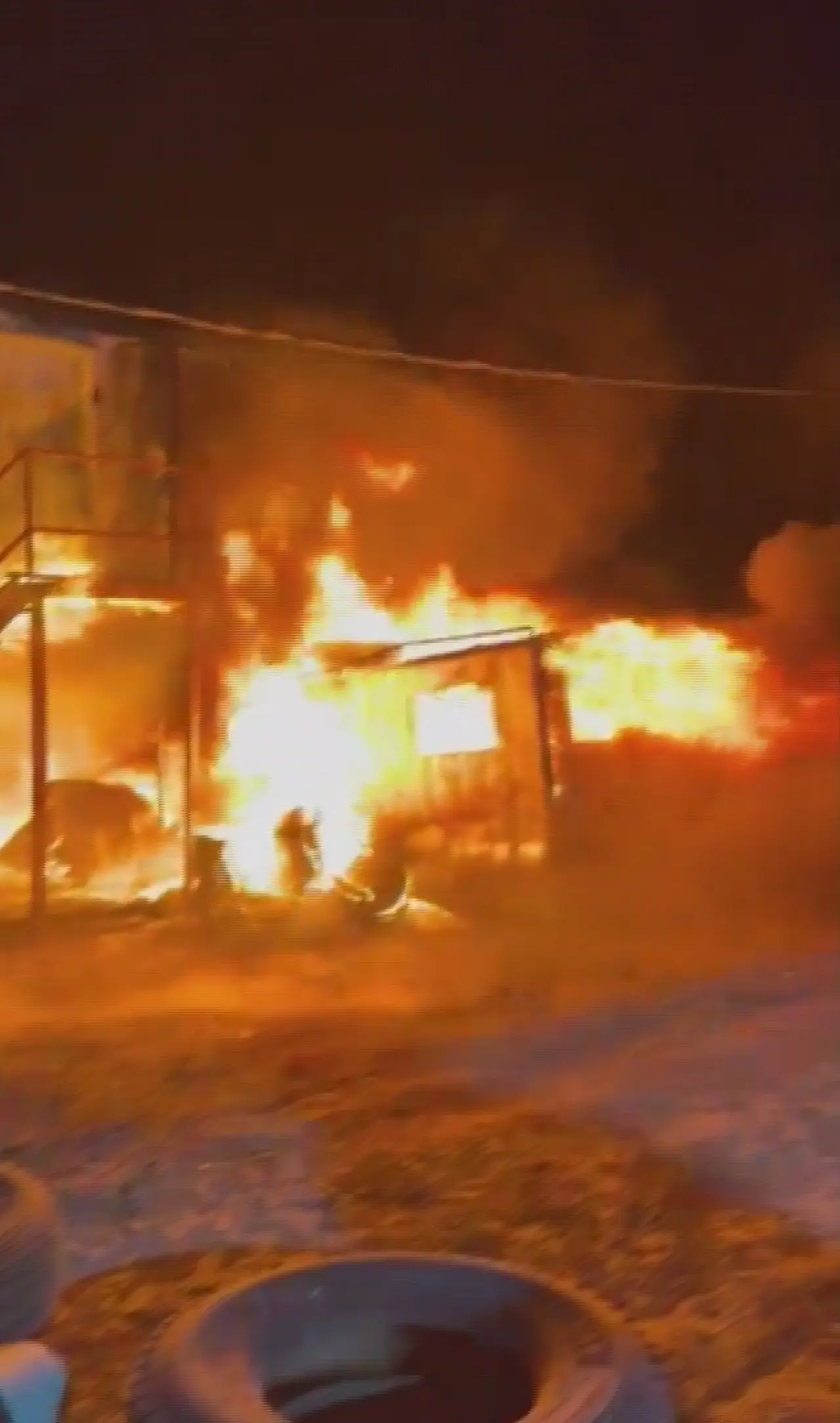 Hatay'da şantiyede çalışan işçilerin kaldığı konteyner yatakhane alev aldı, itfaiye hızlı müdahale etti.