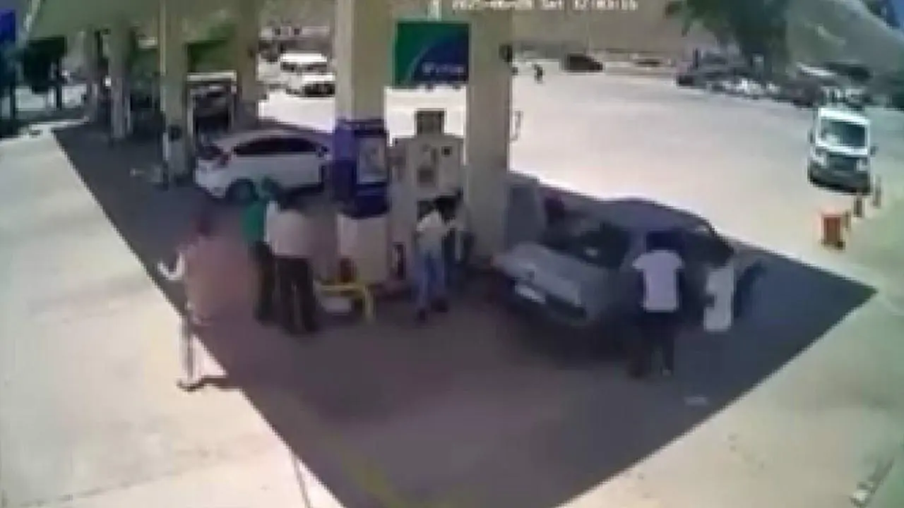 Akaryakıt istasyonundaki marketin tavanı patlamanın etkisiyle hasar gördü. Güvenlik kameraları, insanların korku dolu anlarını kaydetti.