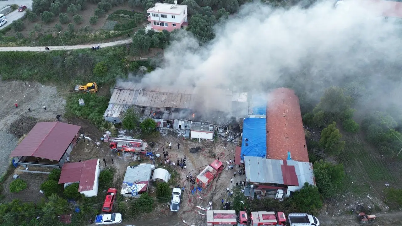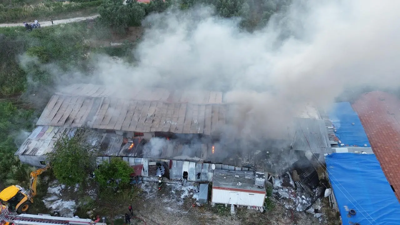 Yangının fabrikada yarattığı hasar drone ile havadan kayıt altına alındı. Yangının çıkış nedeni araştırılıyor.