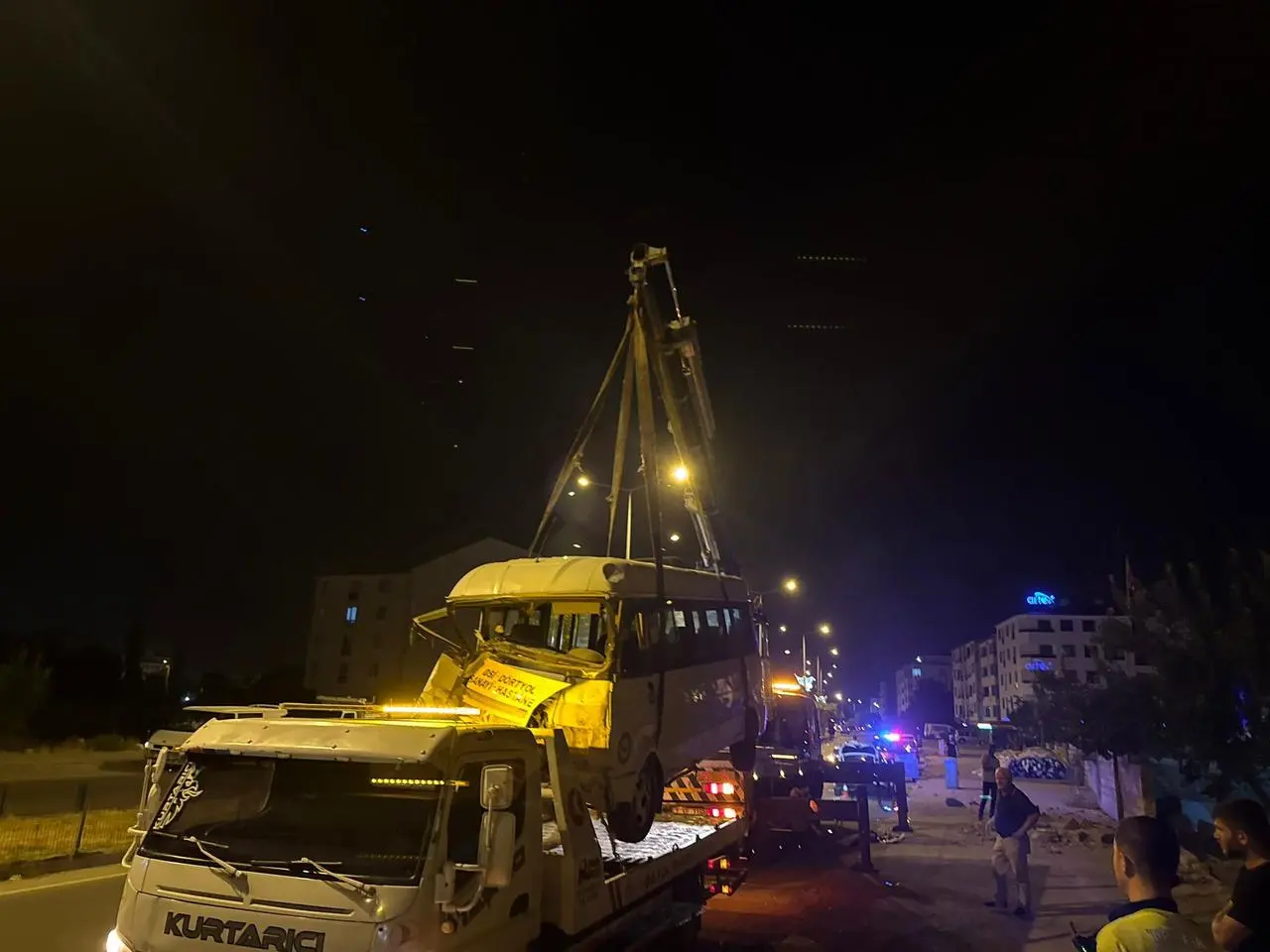 Iğdır'da gece meydana gelen trafik kazasında yolcu minibüsü bahçe duvarına çarparak asılı kaldı.