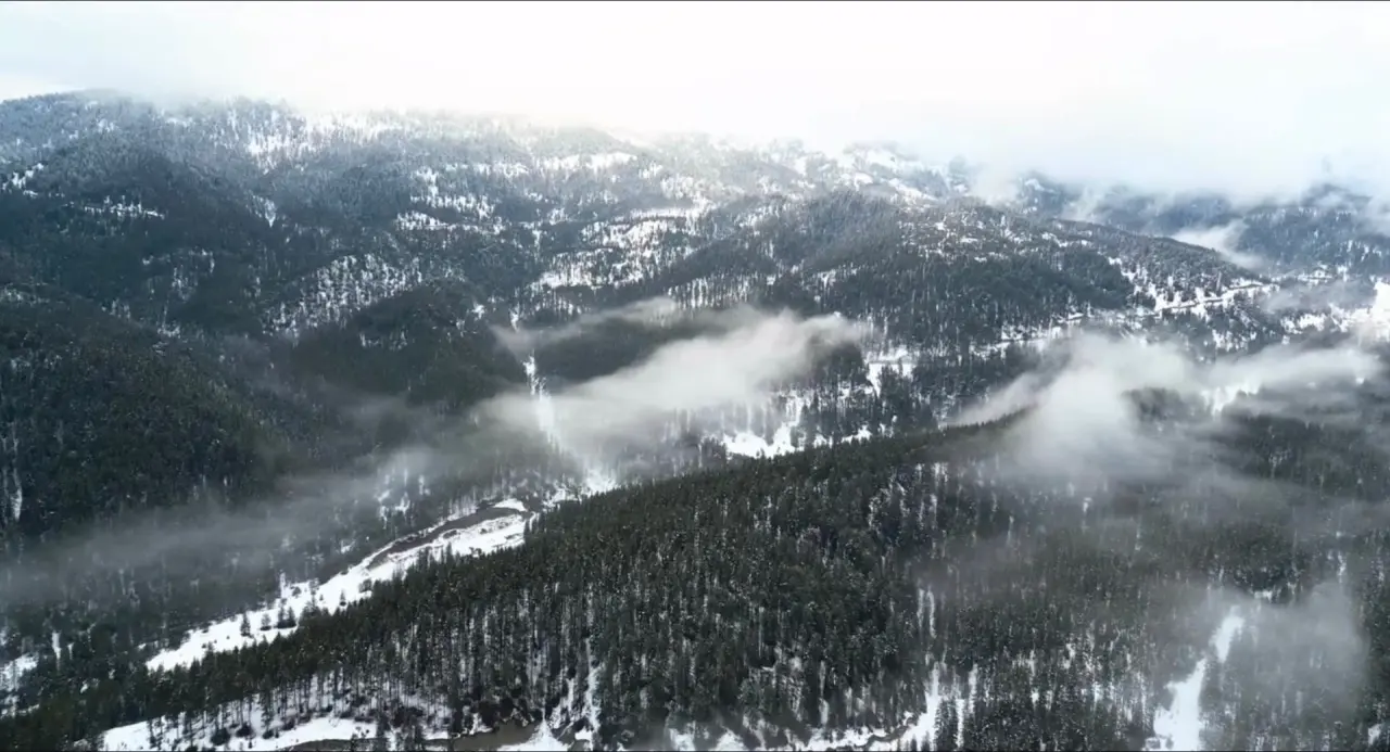 Çankırı-Kastamonu sınırındaki Ilgaz Dağı, kar yağışıyla kartpostallık manzaralar sunuyor. Havadan çekilen görüntüler, dağın beyaz örtüye bürünmüş halini gözler önüne seriyor.