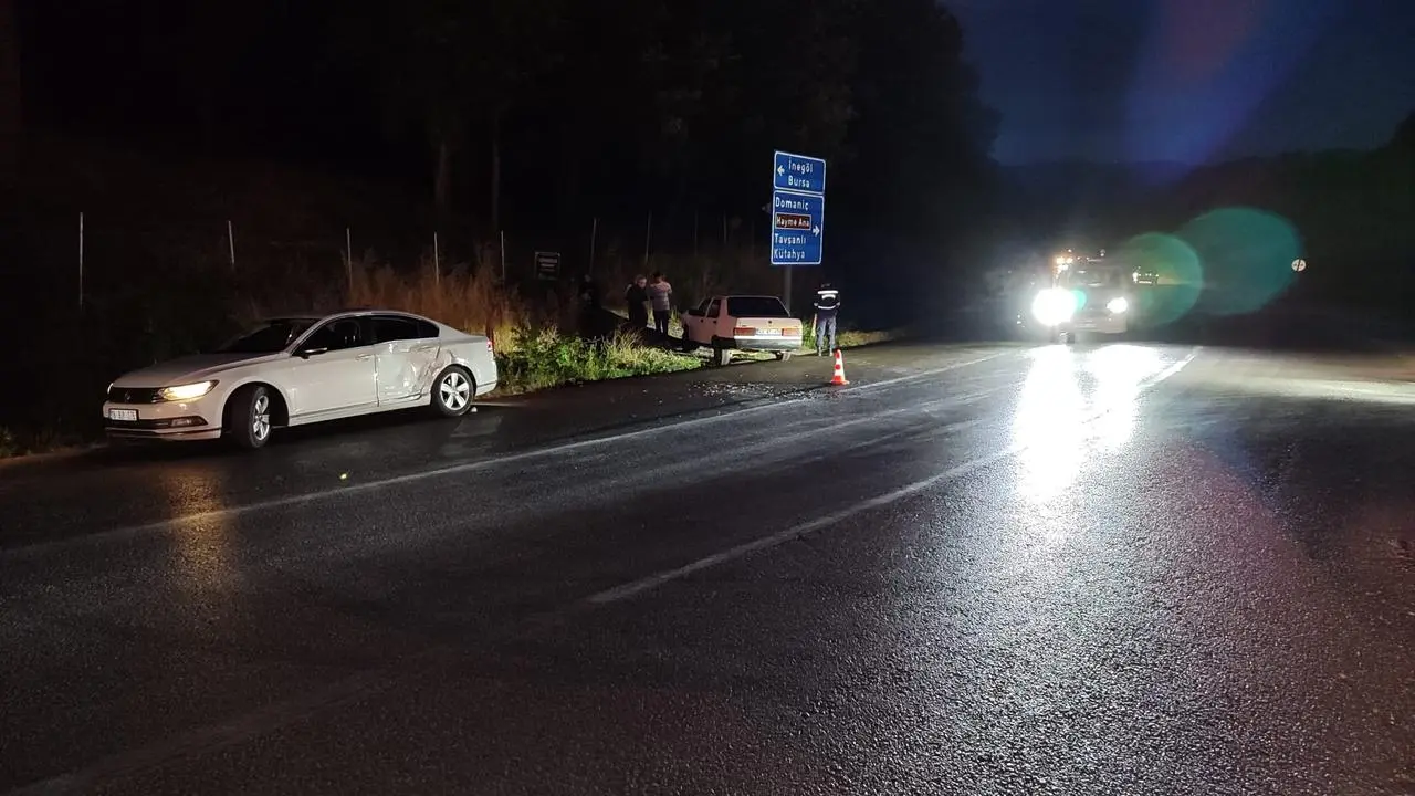 İnegöl-Domaniç yolu üzerinde seyir halindeki iki otomobil çarpıştı. Kaza akşam saat 21.00 sıralarında yaşandı.