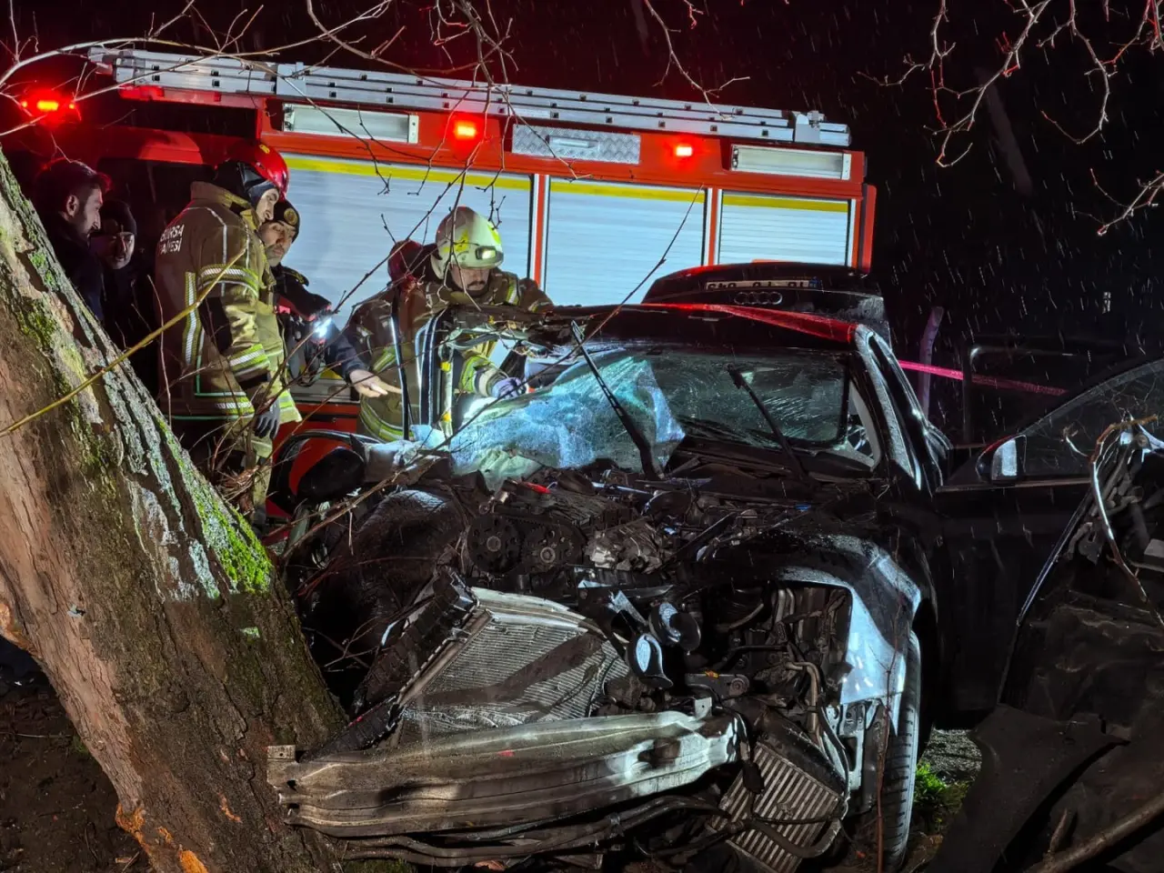 Kaza, gece saat 01.30'da Ortaköy Mahallesi yolunda meydana geldi. 16 FC 849 plakalı araç virajda kontrolü kaybederek ağaca çarptı.