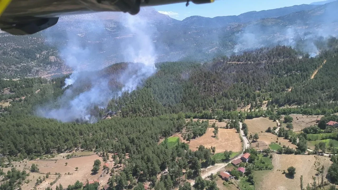 202 personel ve 76 araç karadan müdahaleye devam ediyor. İki helikopter havadan destek sağlıyor.