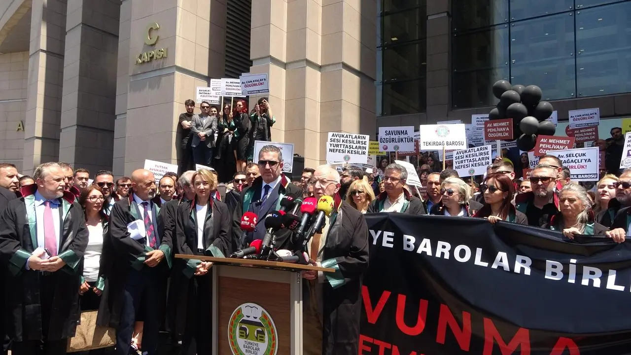 İstanbul Barosu Başkanı İbrahim Kaboğlu öncülüğünde adliye önünde toplantı düzenlendi. Avukatlar, meslektaşları Pehlivan'ın serbest bırakılması talebini yineledi.