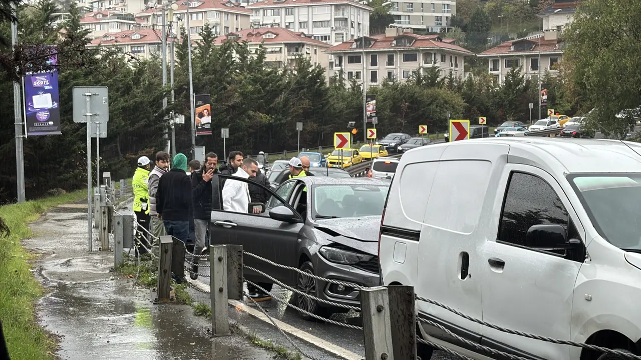 İstanbul Beşiktaş'ta yağmurun etkisiyle kayganlaşan yolda peş peşe iki trafik kazası meydana geldi.