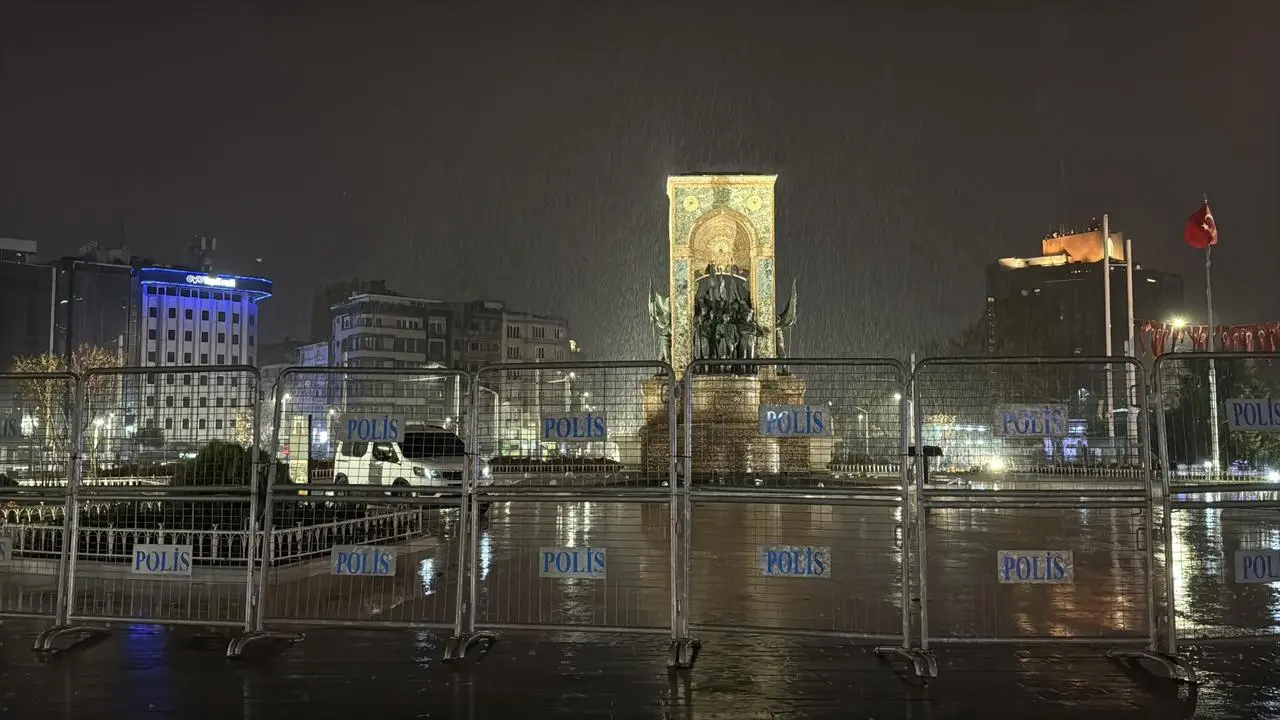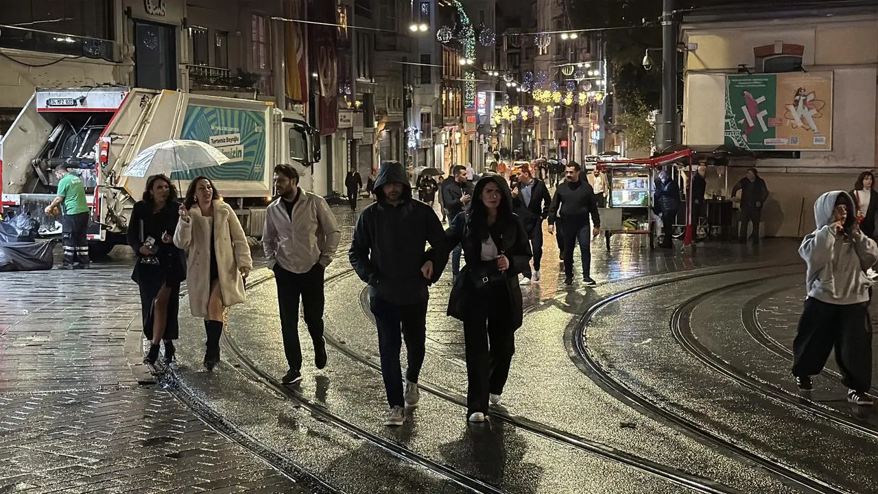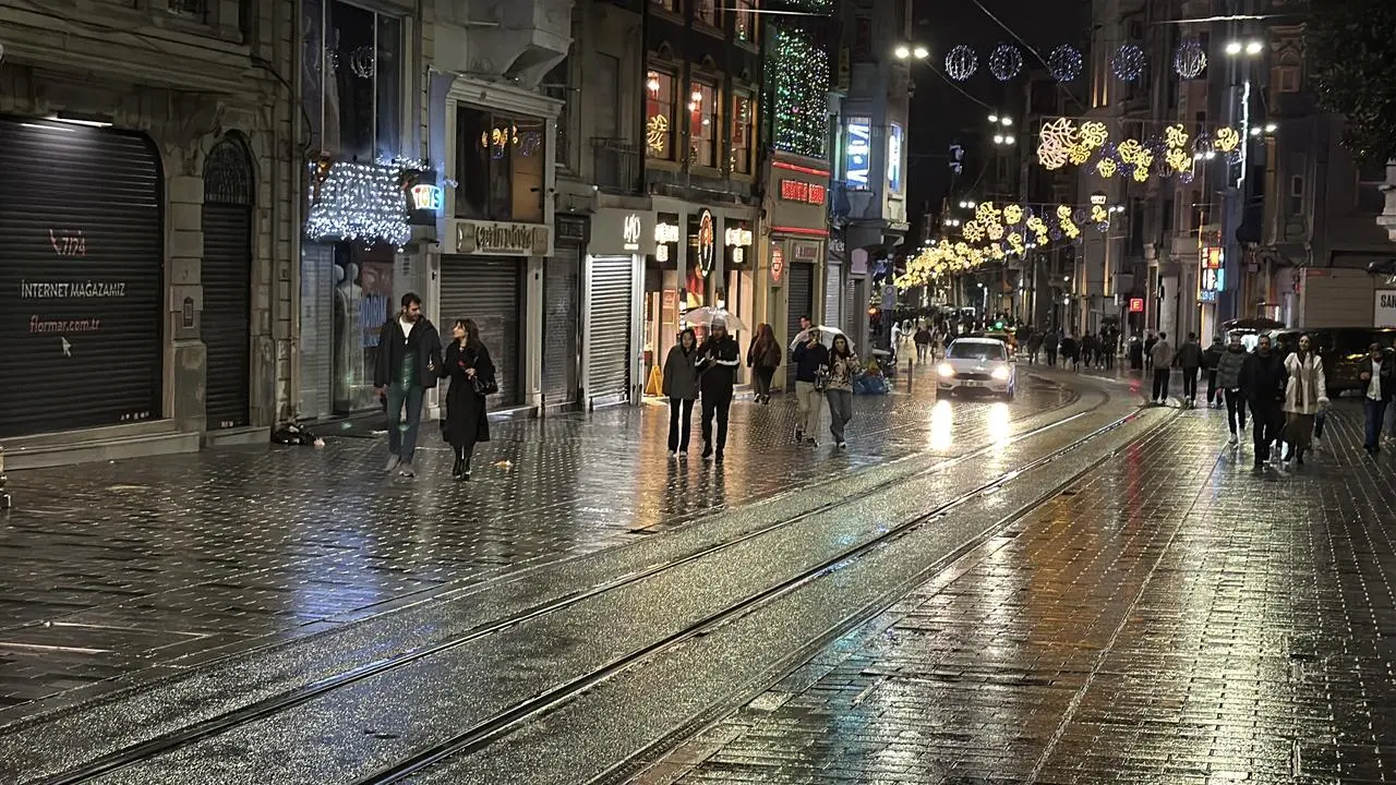 İstanbul'da dün başlayan yağmur gece saatlerinde Taksim Meydanı ve İstiklal Caddesi'nde etkili oldu.