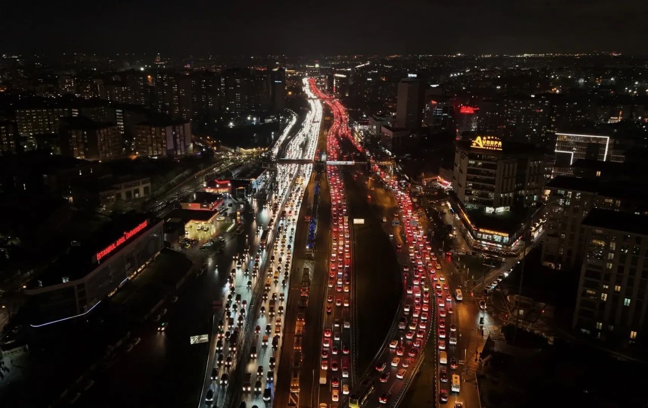 Havadan çekilen görüntülerde trafiğin boyutu net şekilde görüldü. Özellikle Cevizlibağ E-5 üzerinde kilometrelerce uzayan araç kuyrukları dikkat çekti.