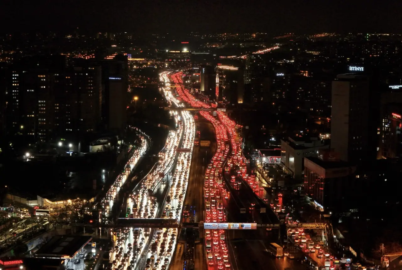 Ana arterlerde ve çevre yollarında araçlar uzun kuyruklar oluşturdu. Sürücüler saatlerce direksiyon başında beklemek zorunda kaldı.