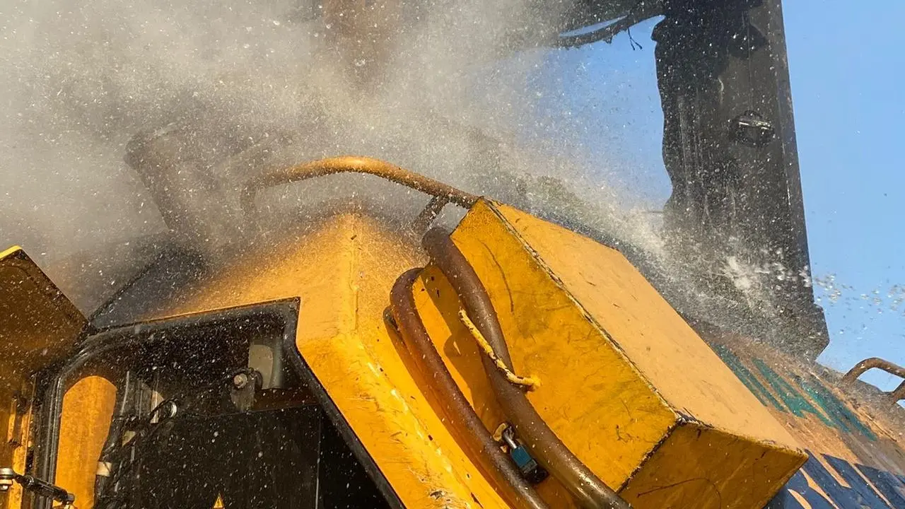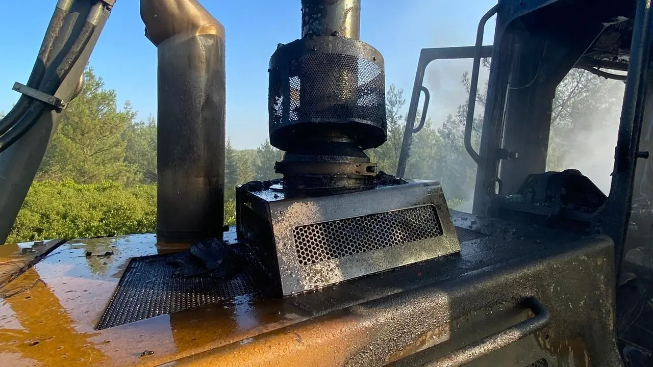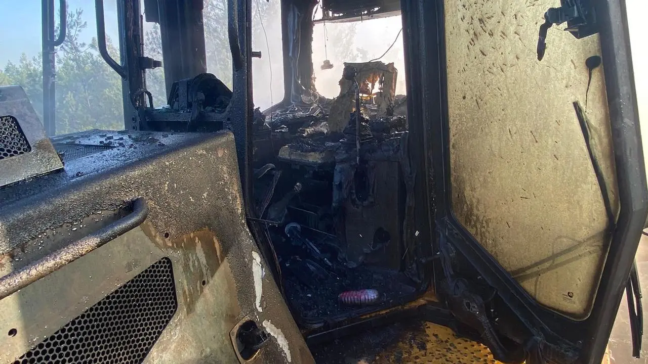 İzmir'in Gaziemir ilçesinde orman yangınına müdahale eden dozer alevler arasında kalarak kullanılamaz hale geldi.