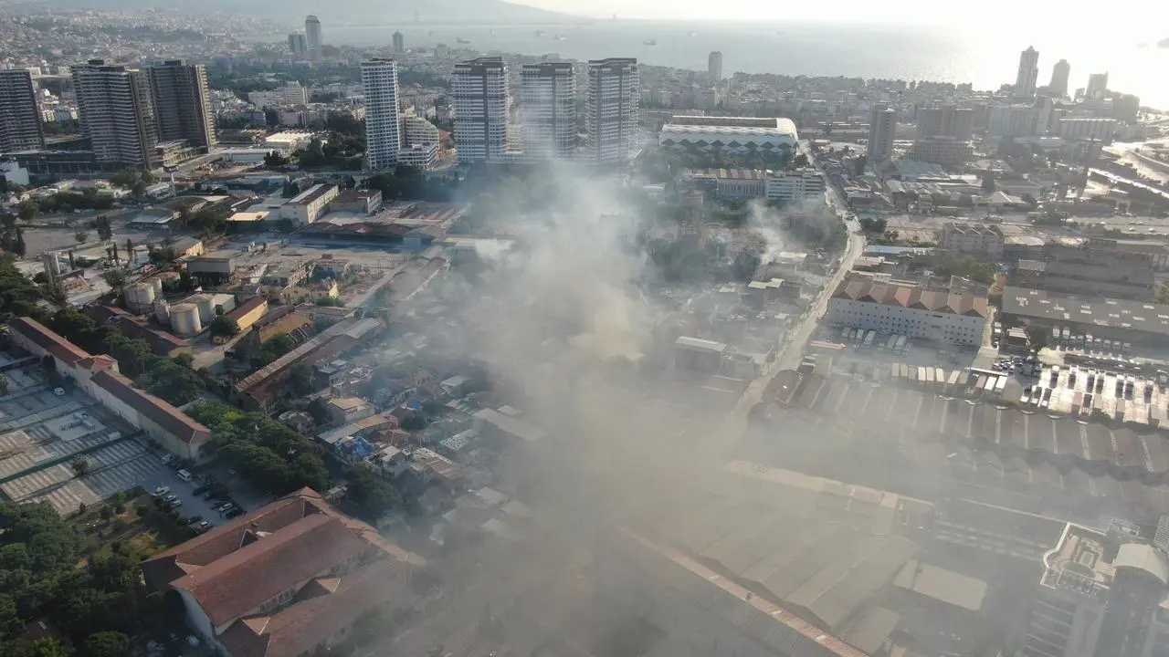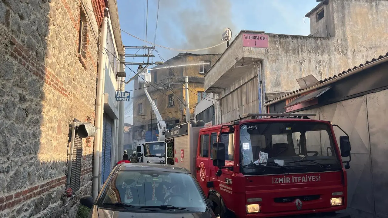 İzmir'in Konak ilçesinde çıkan yangın sonucu dört binanın çatısı ve iki tır zarar gördü, can kaybı yaşanmadı.