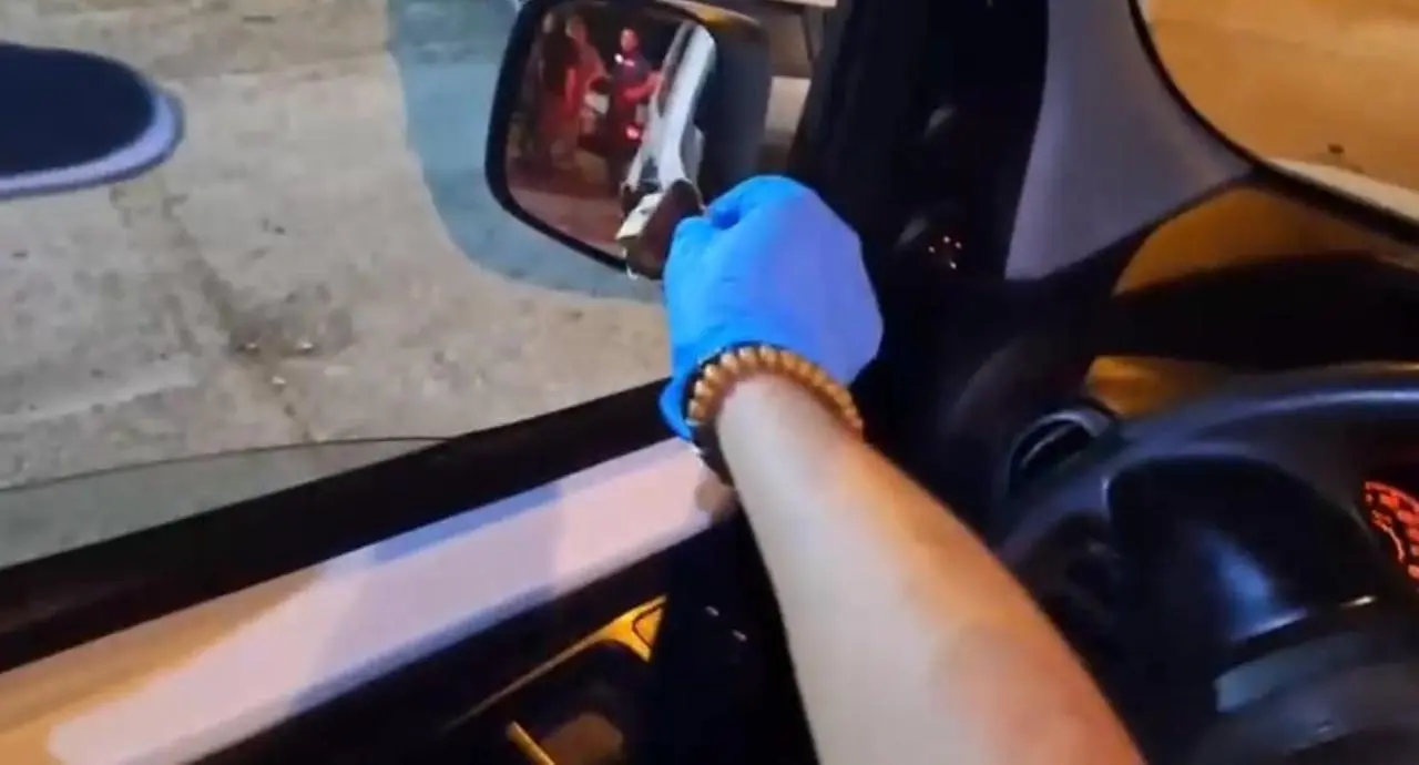 İzmir'de polis ekiplerinin düzenlediği asayiş uygulamasında, araç anahtarıyla açılan gizli bölmede silah bulundu.